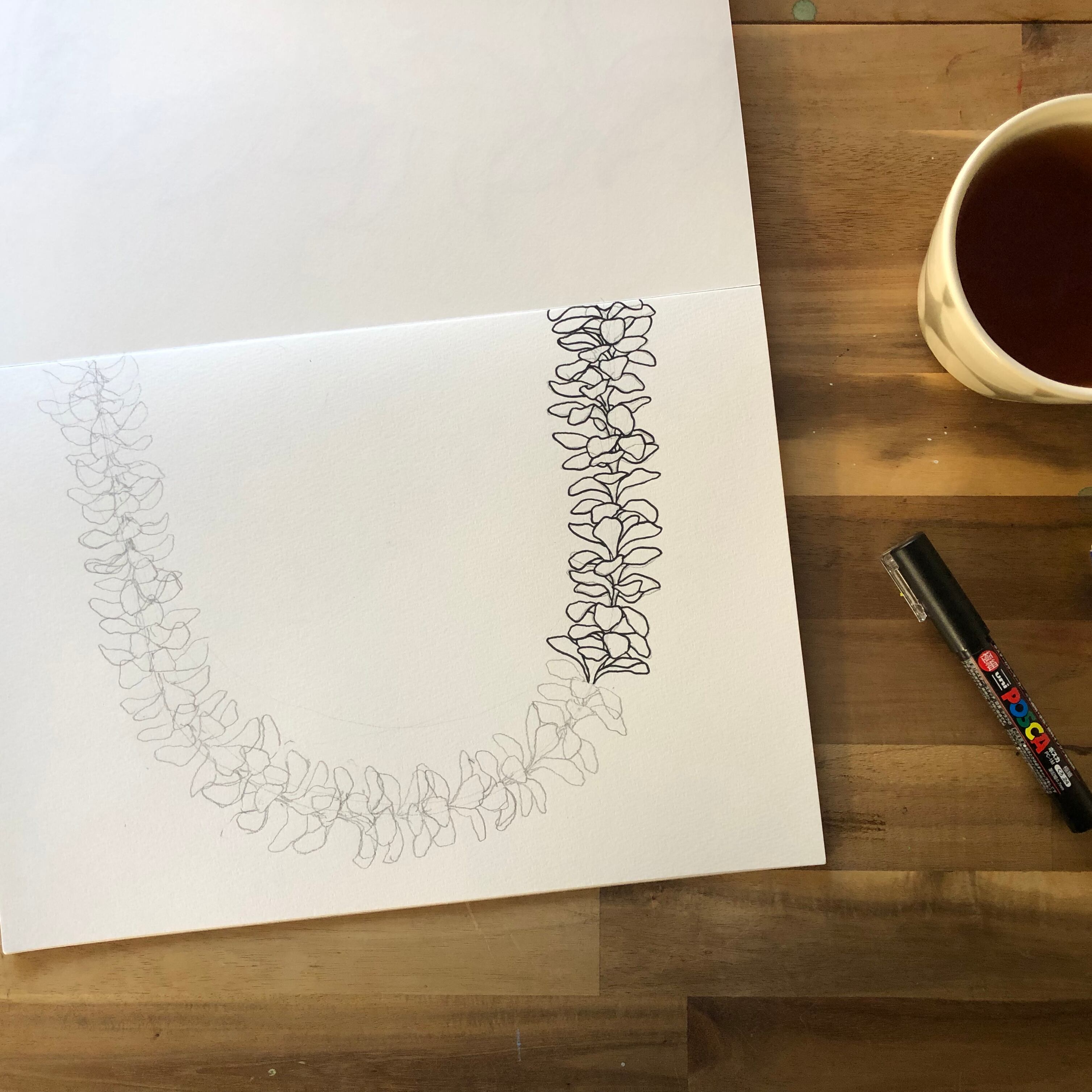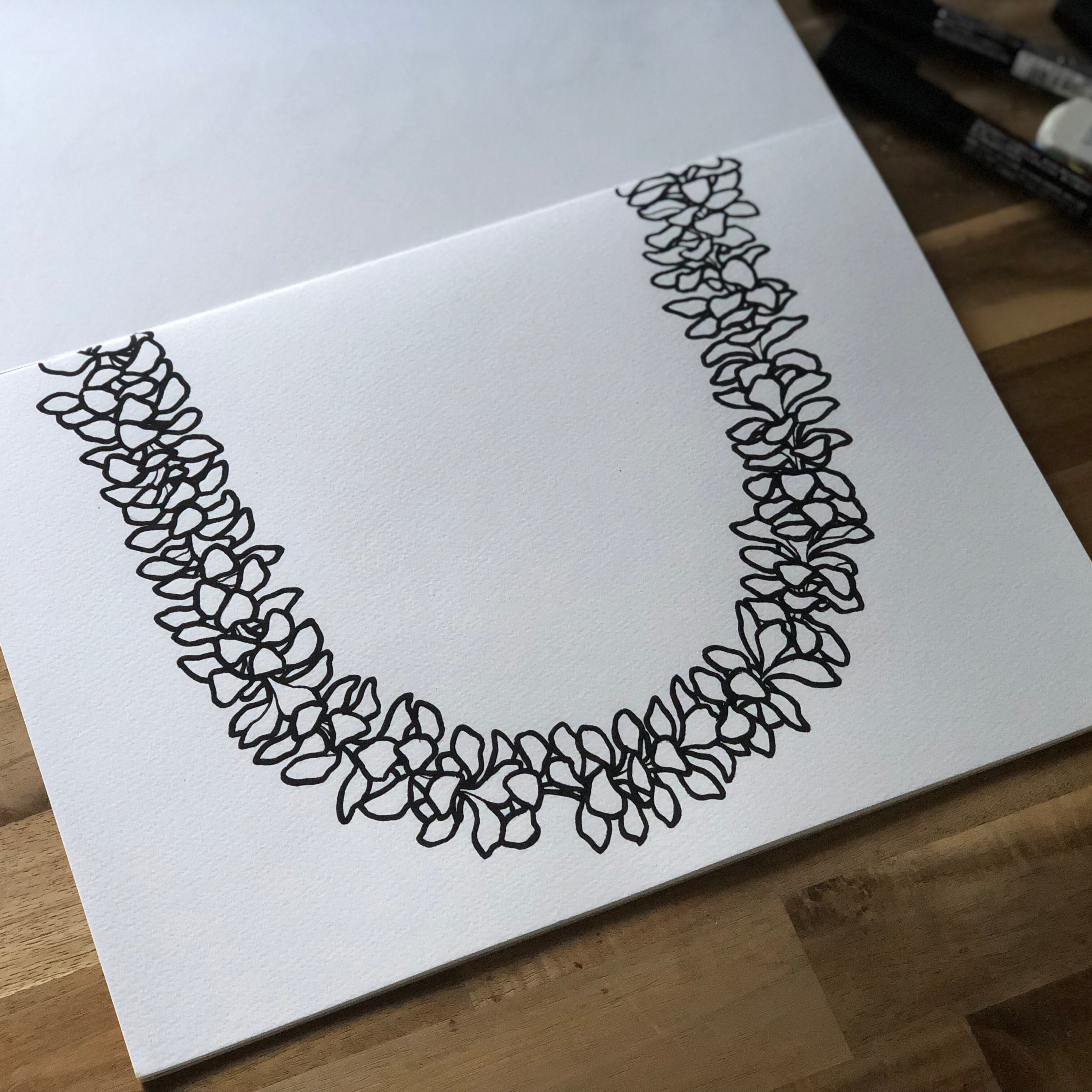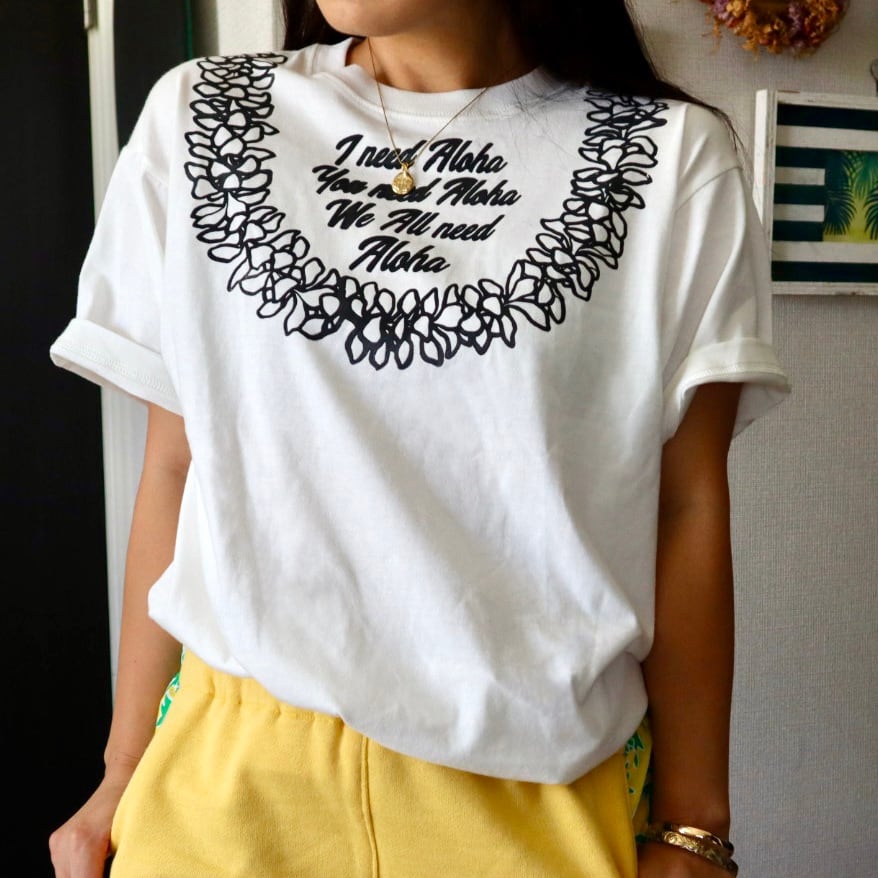 オーガニックコットンTシャツ【LEI ALOHA PUA MELIA】ハワイアンレイ(プルメリア)