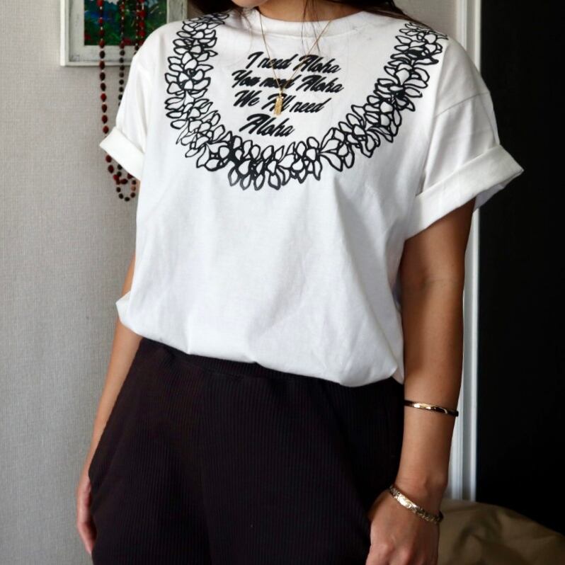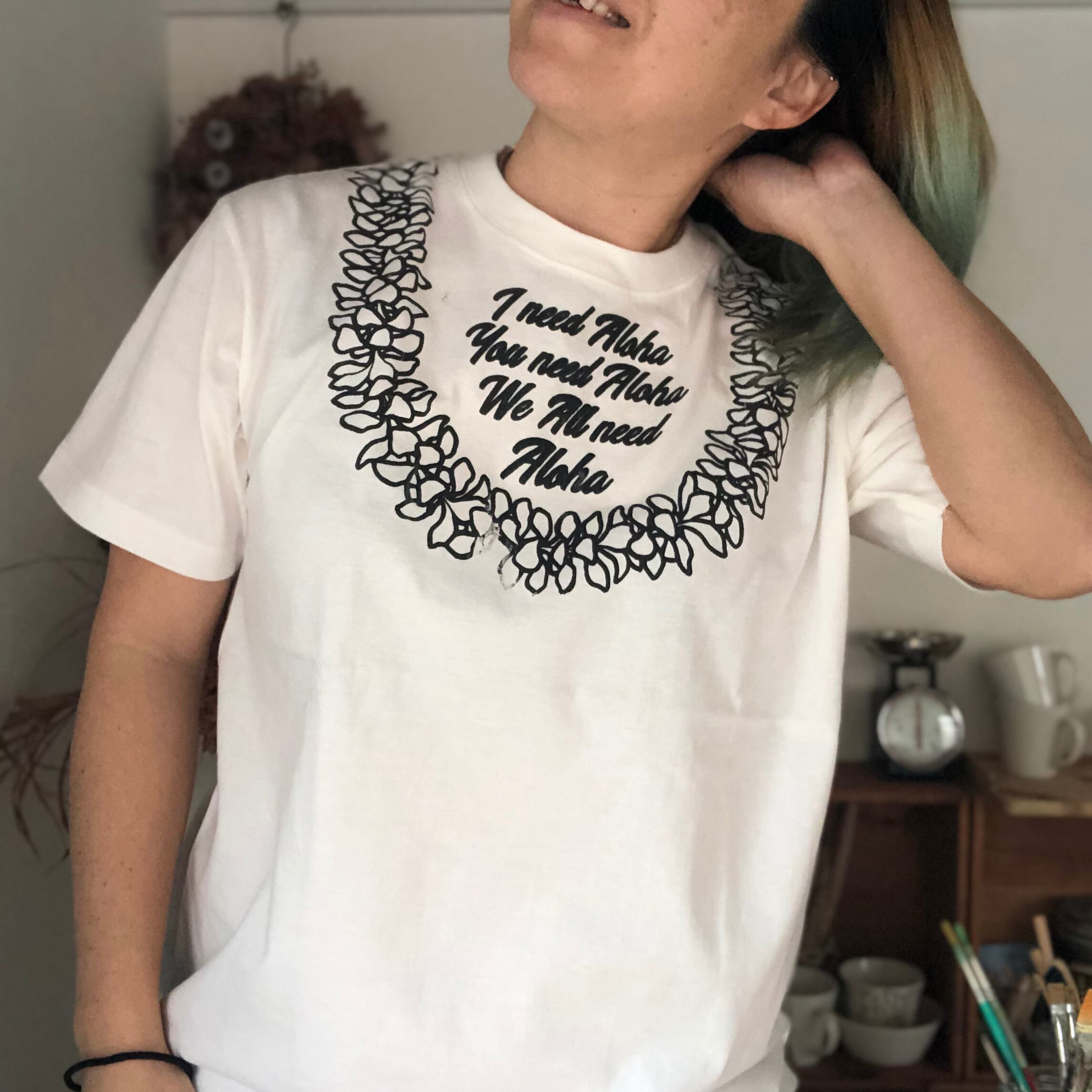 Organic Cotton T-Shirt【LEI ALOHA PUA MELIA】ハワイアンレイ(プルメリア)オーガニックコットンTシャツ