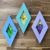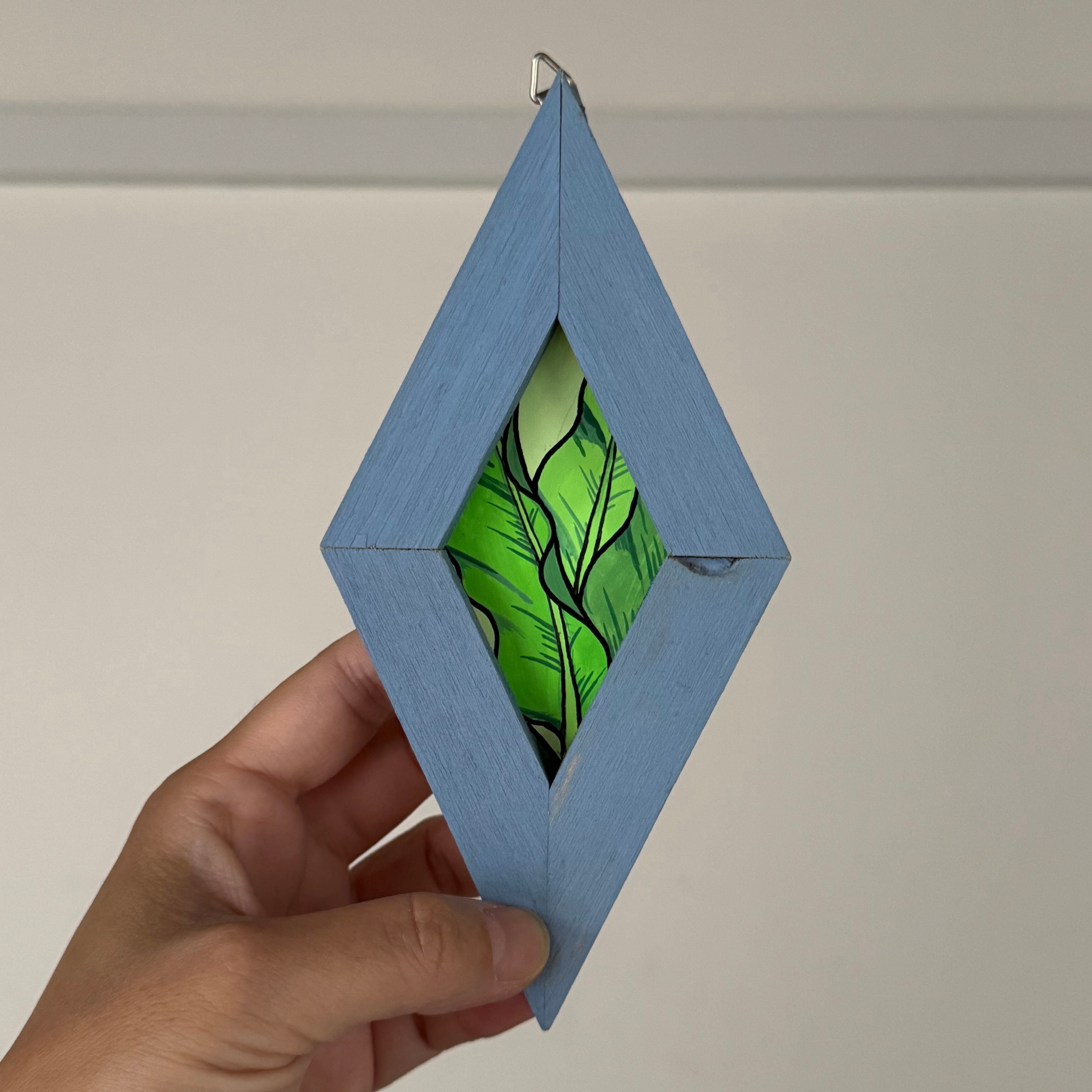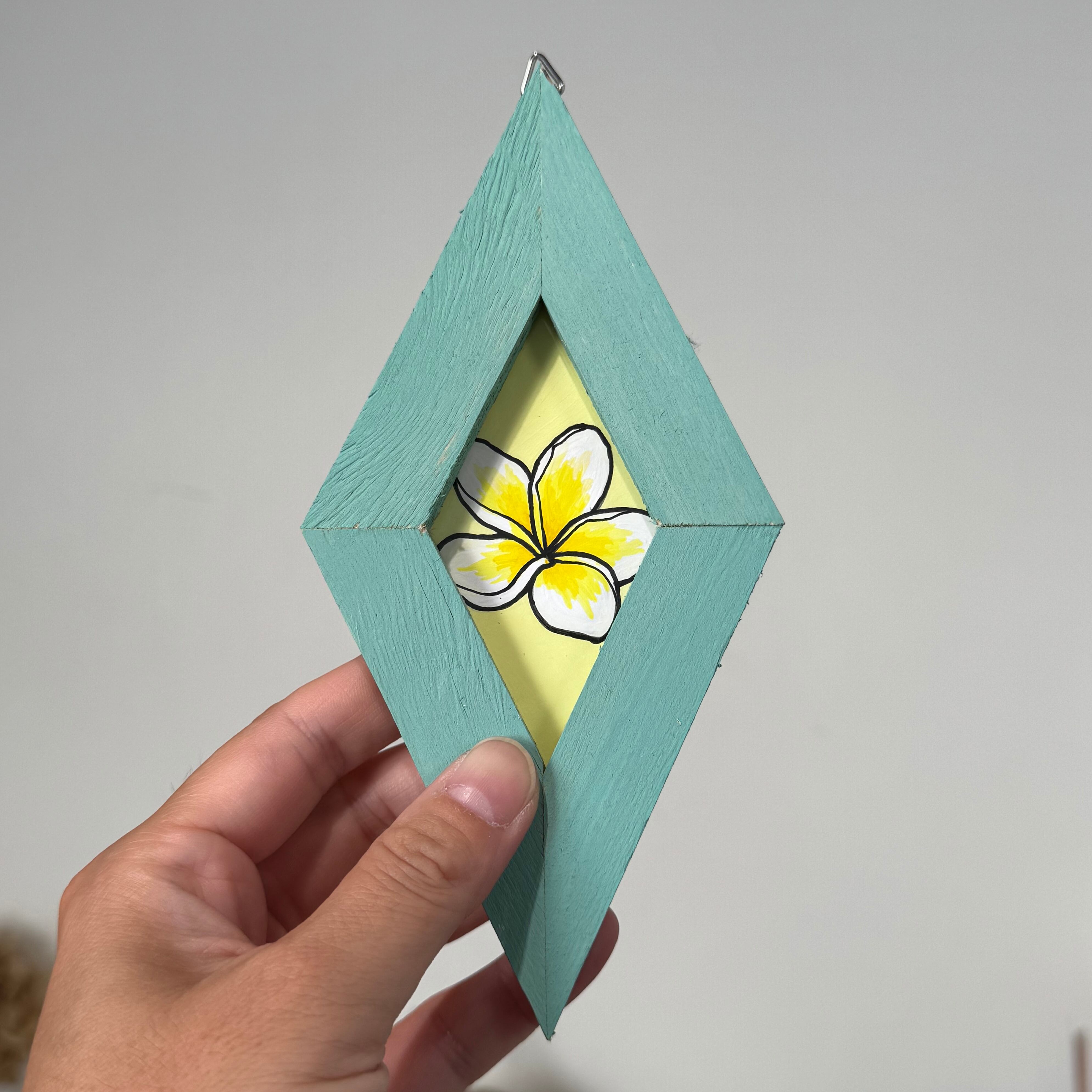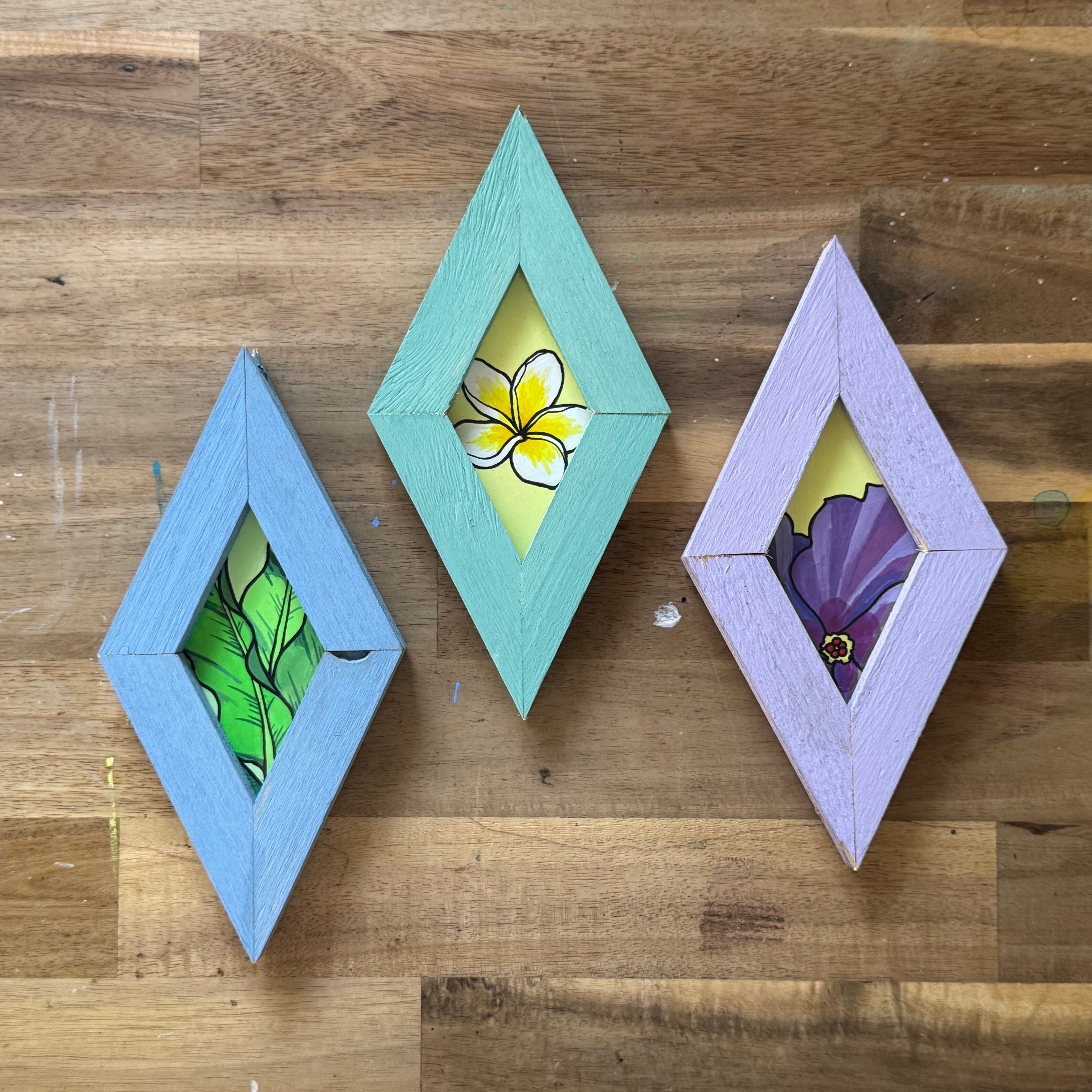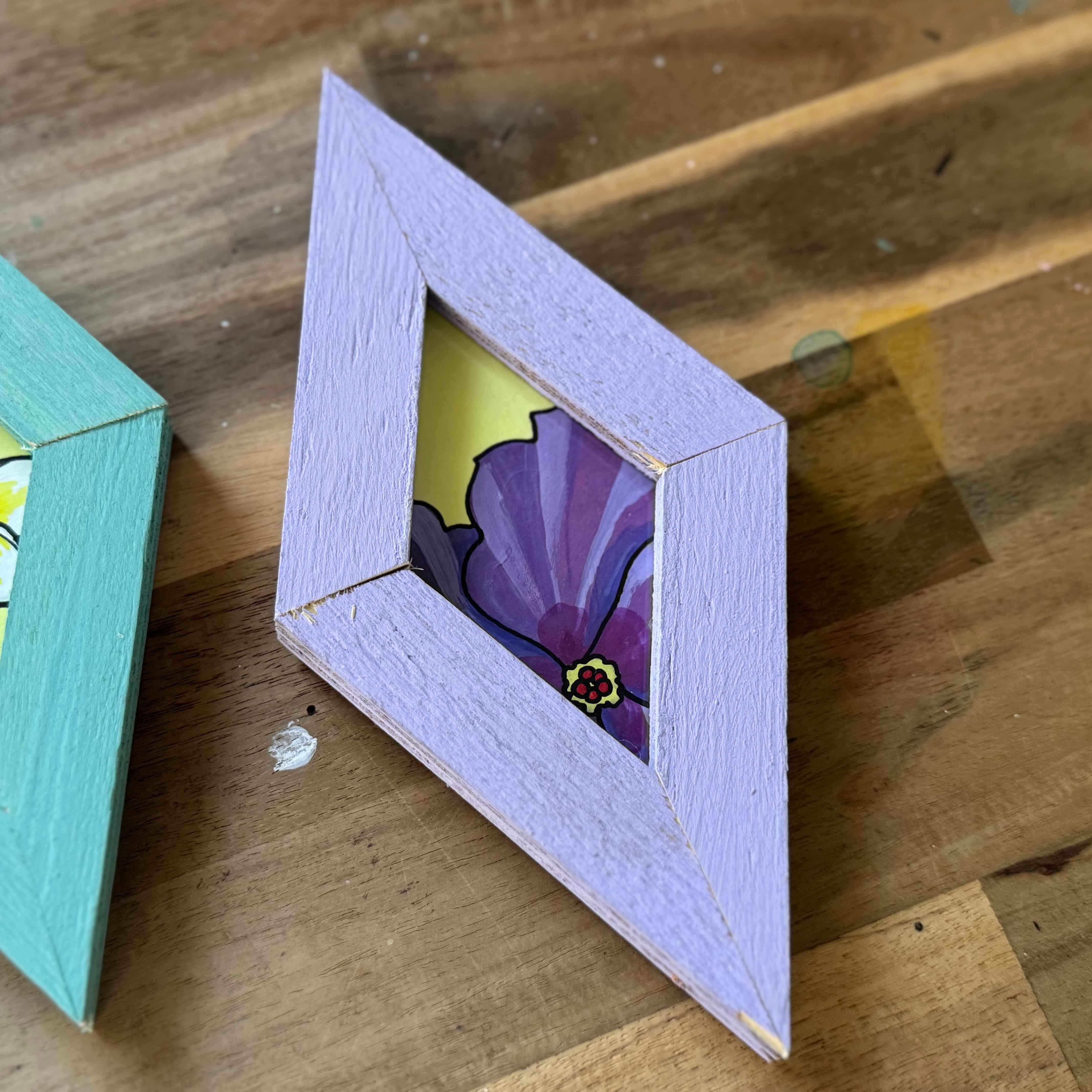 端材をアップサイクルしたフレームに入れたアクリル原画。