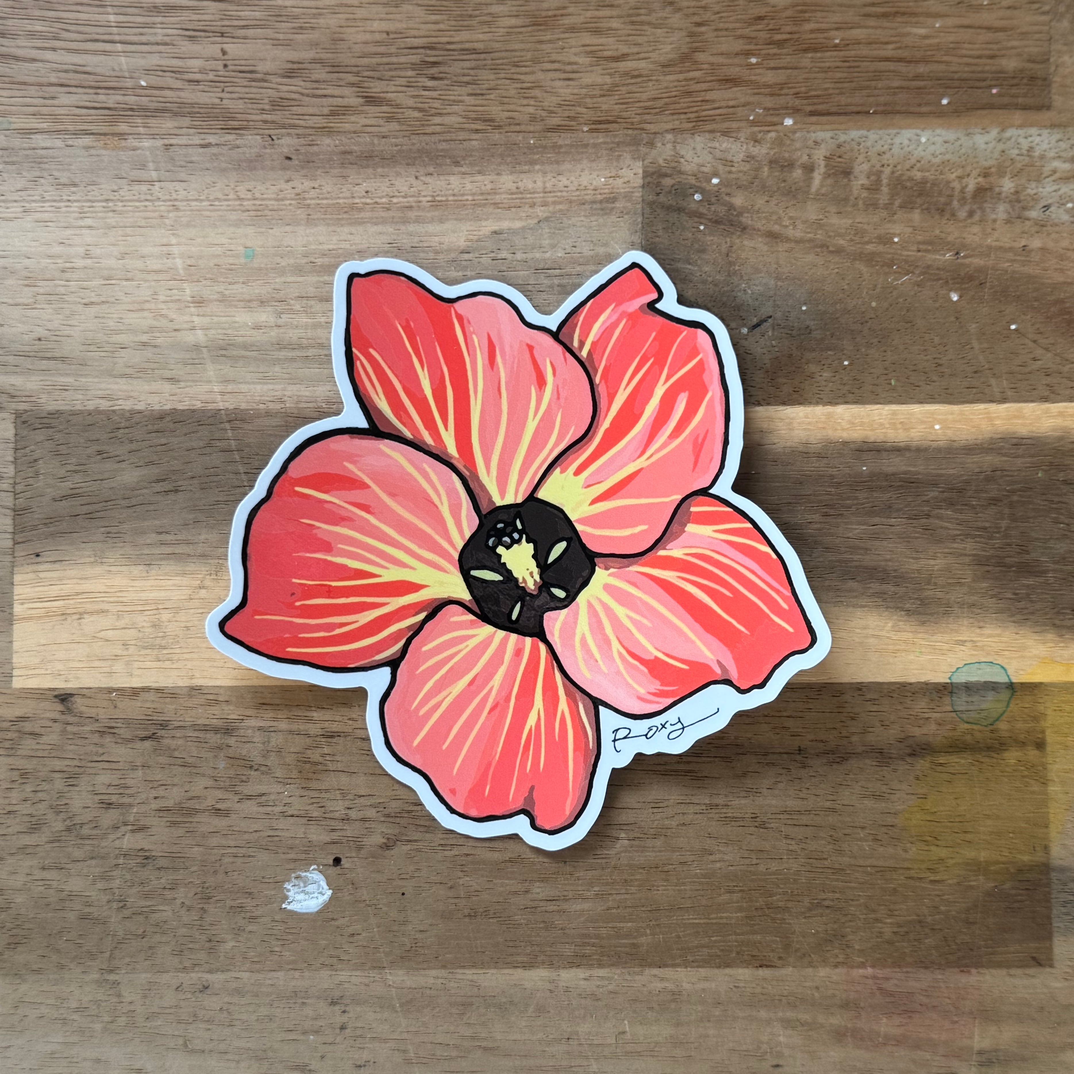 アクリル画で描いたオオハマボウをステッカーにしました!