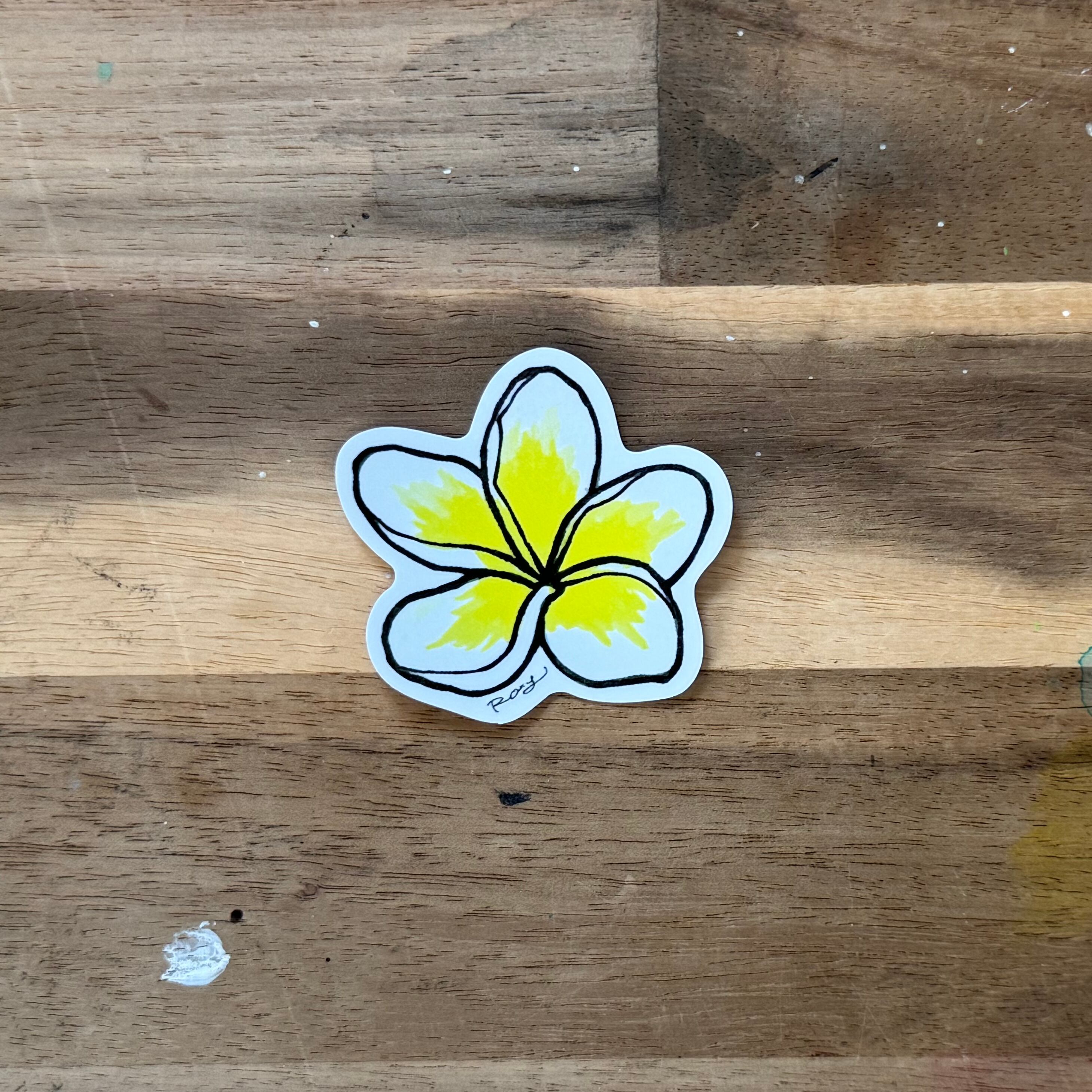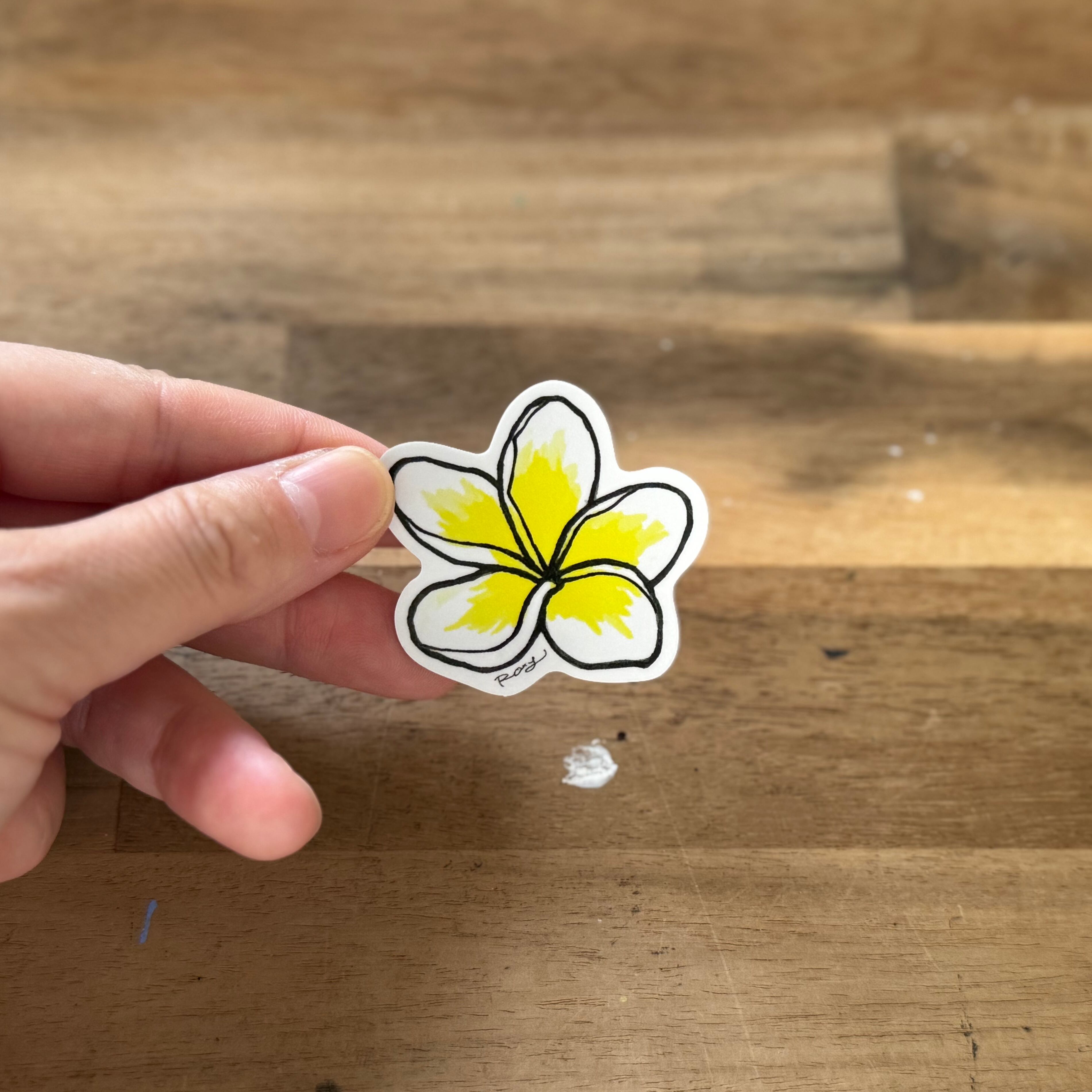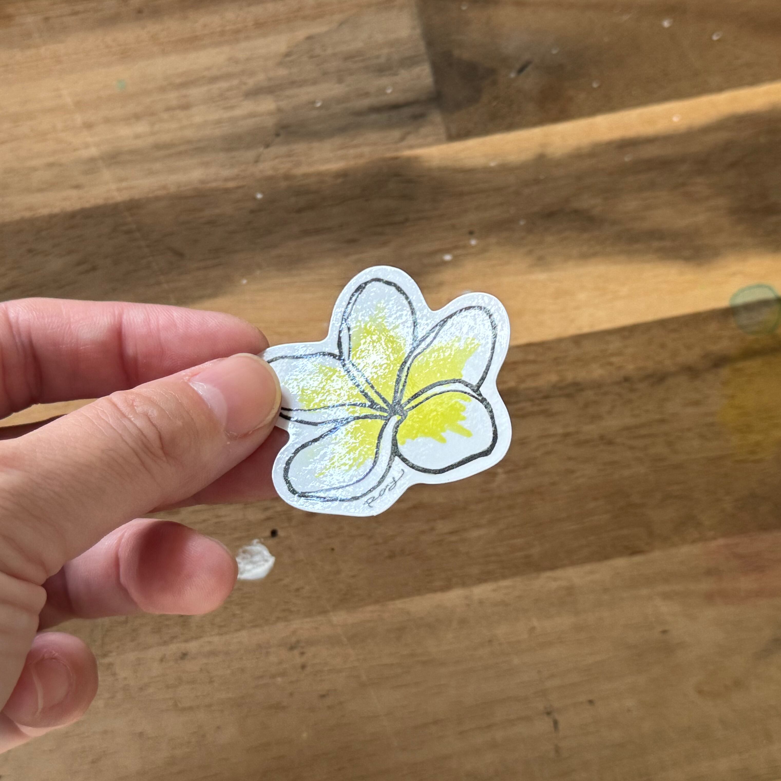 アクリル画で描いたプルメリアをステッカーにしました!
