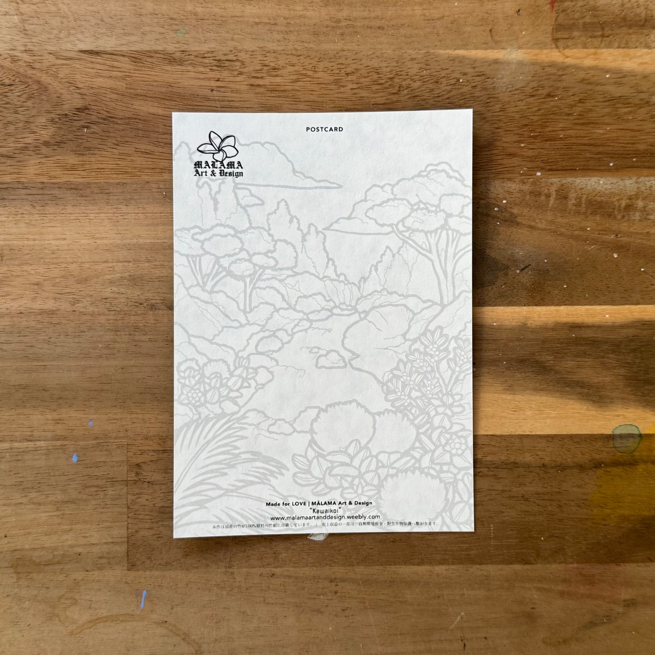 カワイコイに咲くレフアの花で今回のアート制作をご依頼くださった先生を、蕾で生徒さんたち、そしてKumu Leinā’ala をモキハナで表現しました。