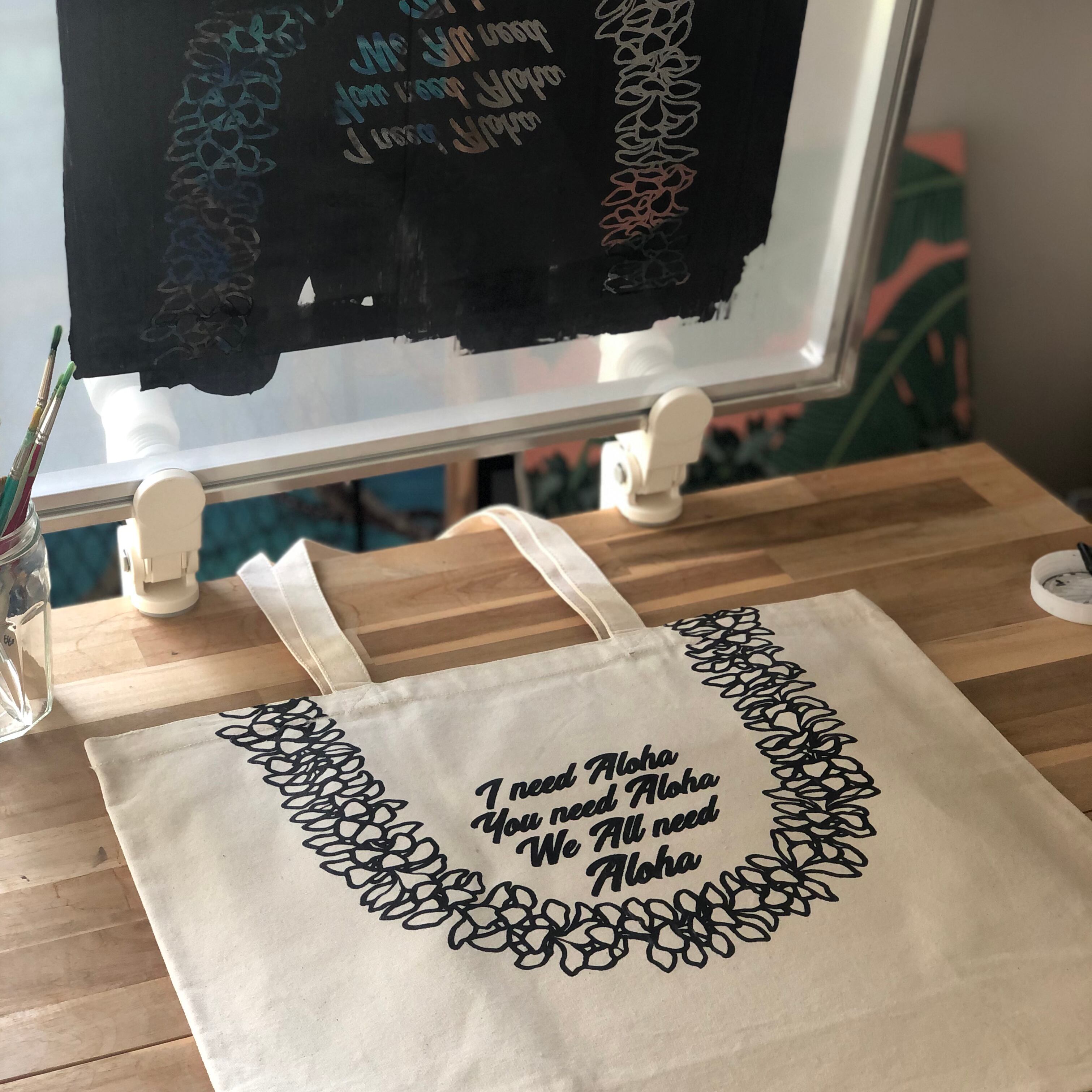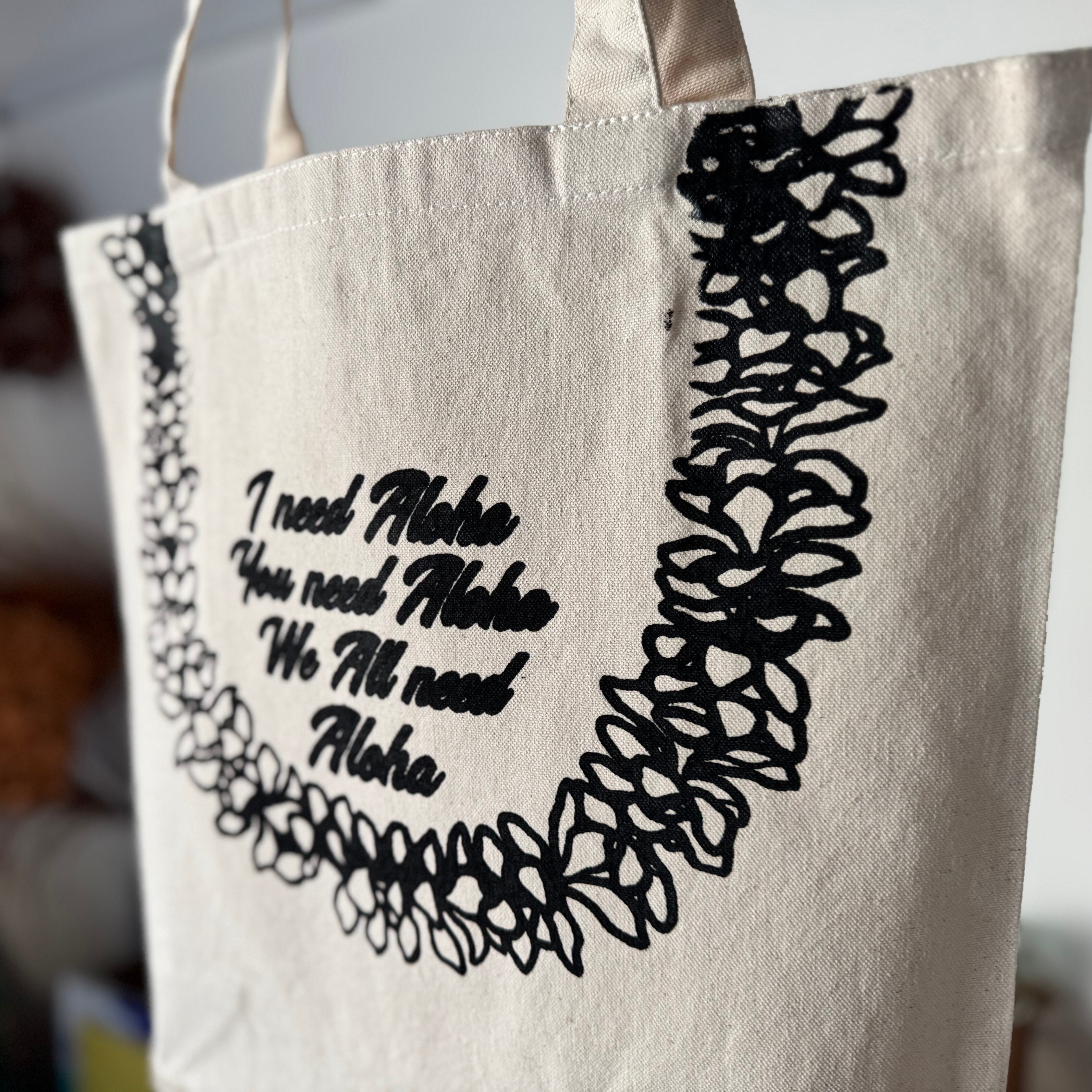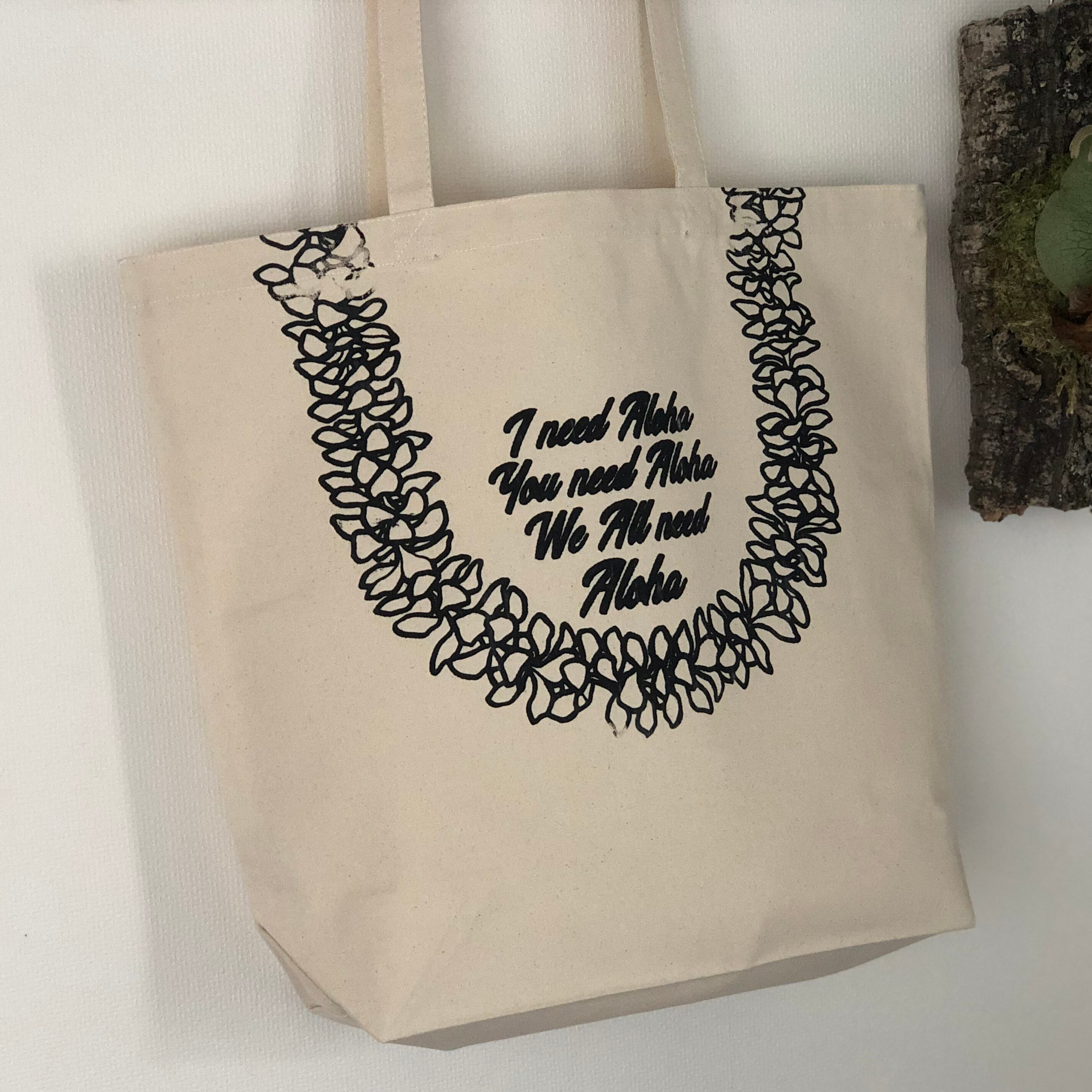 ハンドプリントCanvas Tote L【PLUMERIA LEI】プルメリアのレイ