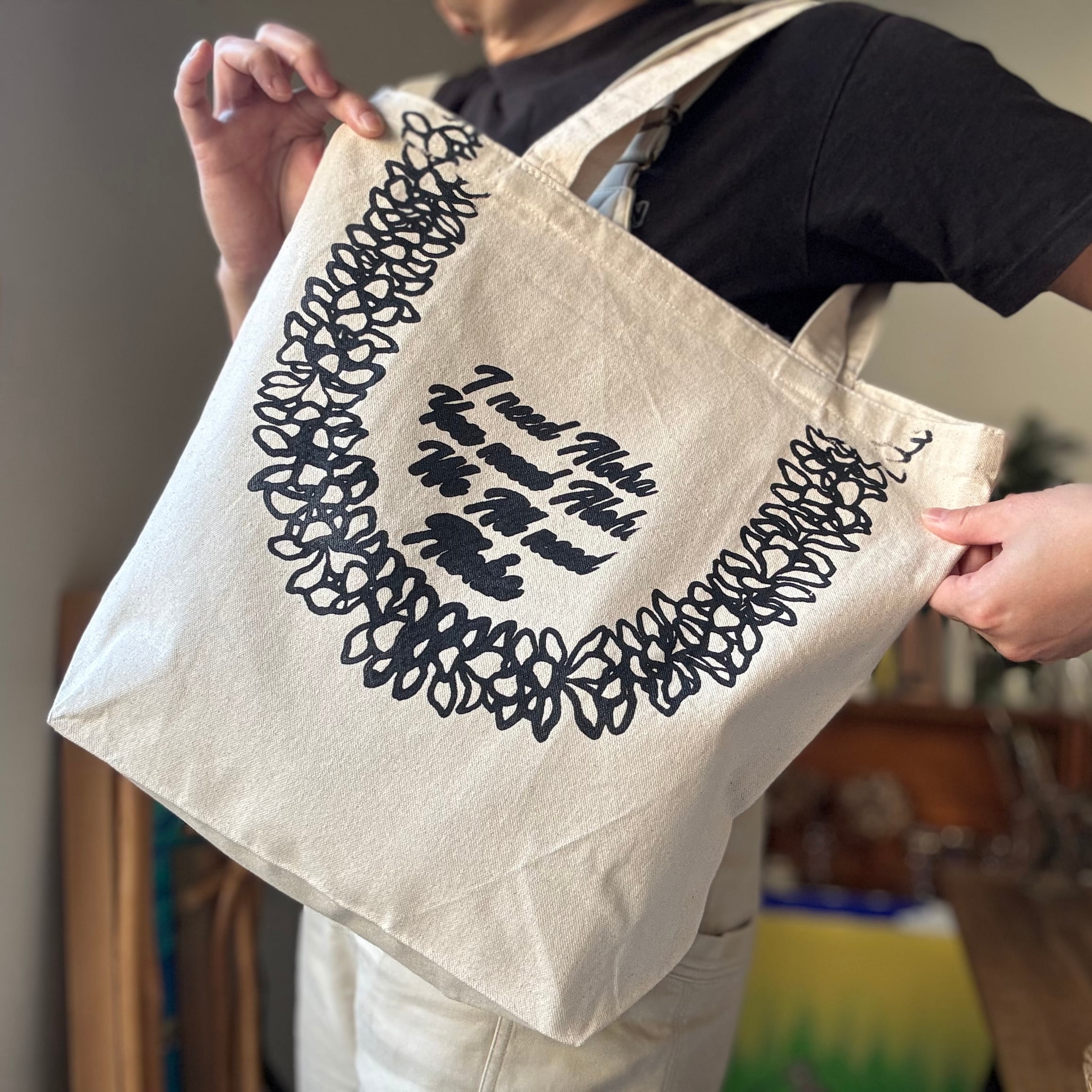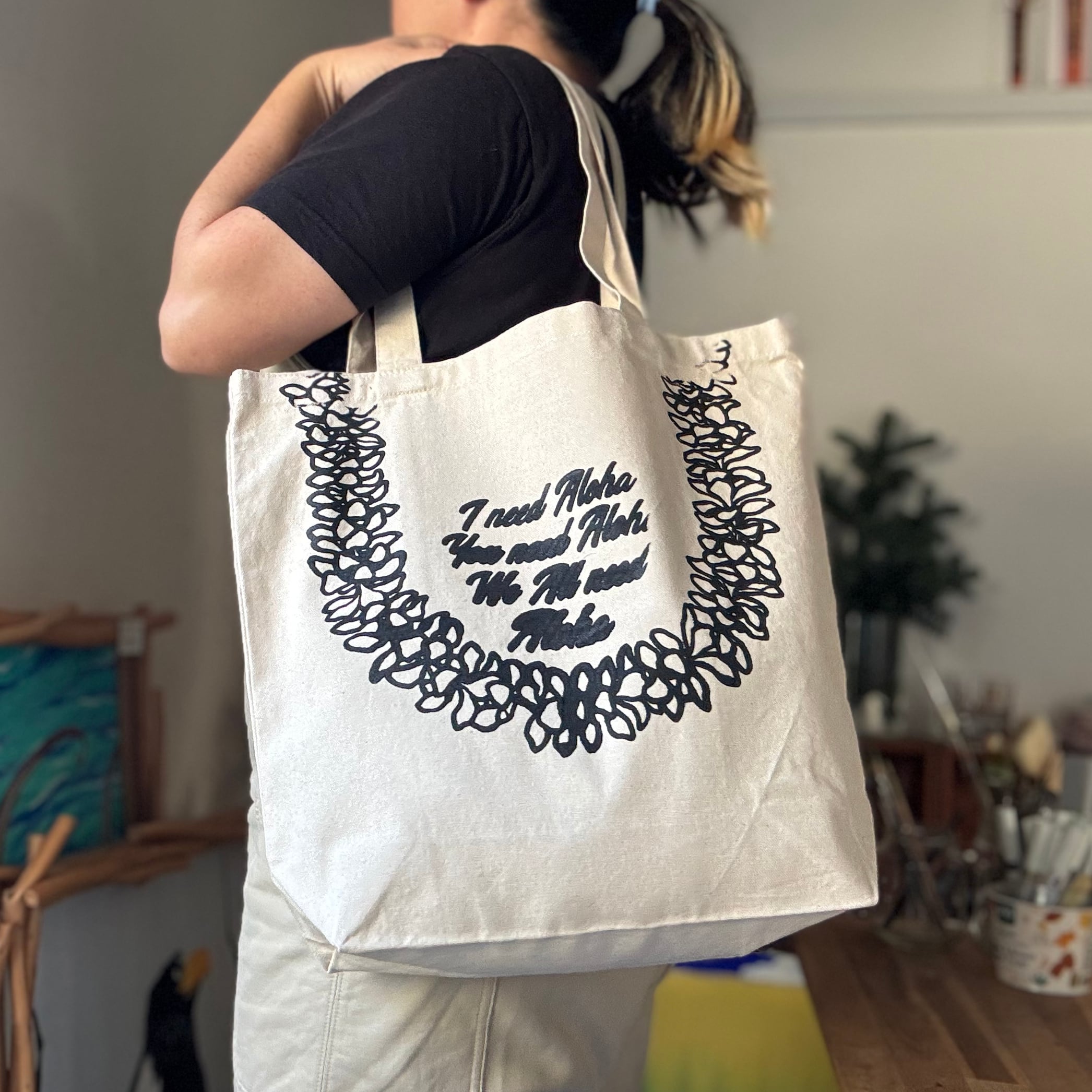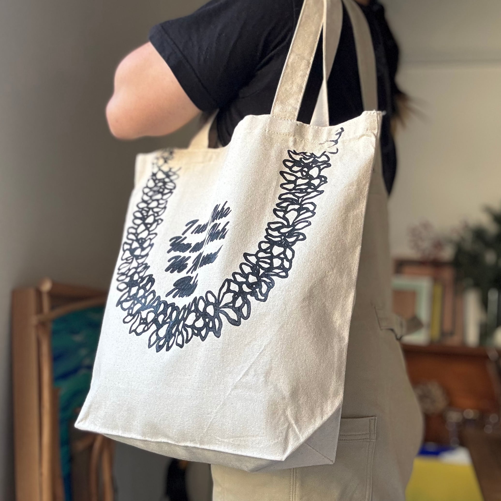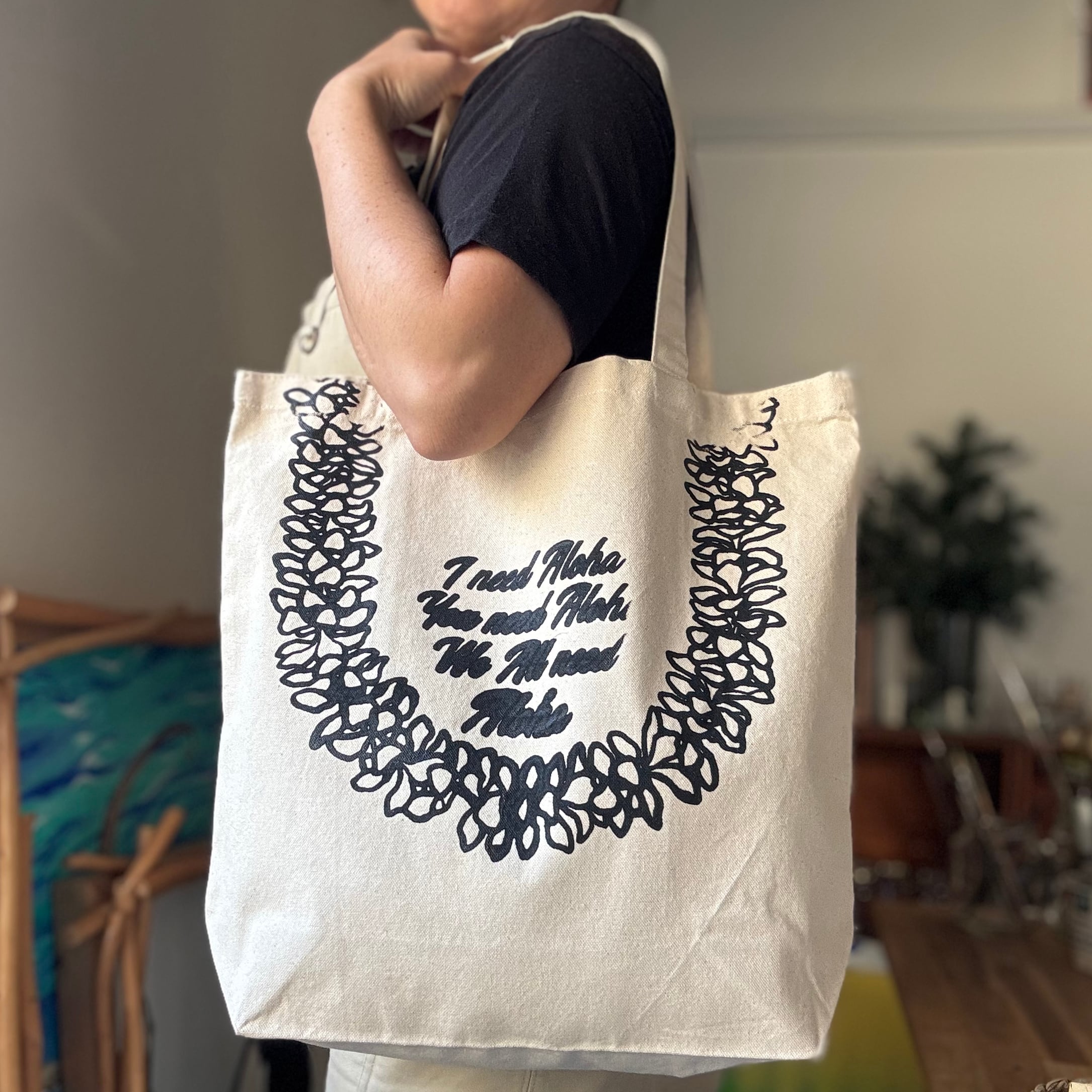 ハンドプリントCanvas Tote L【PLUMERIA LEI】プルメリアのレイ