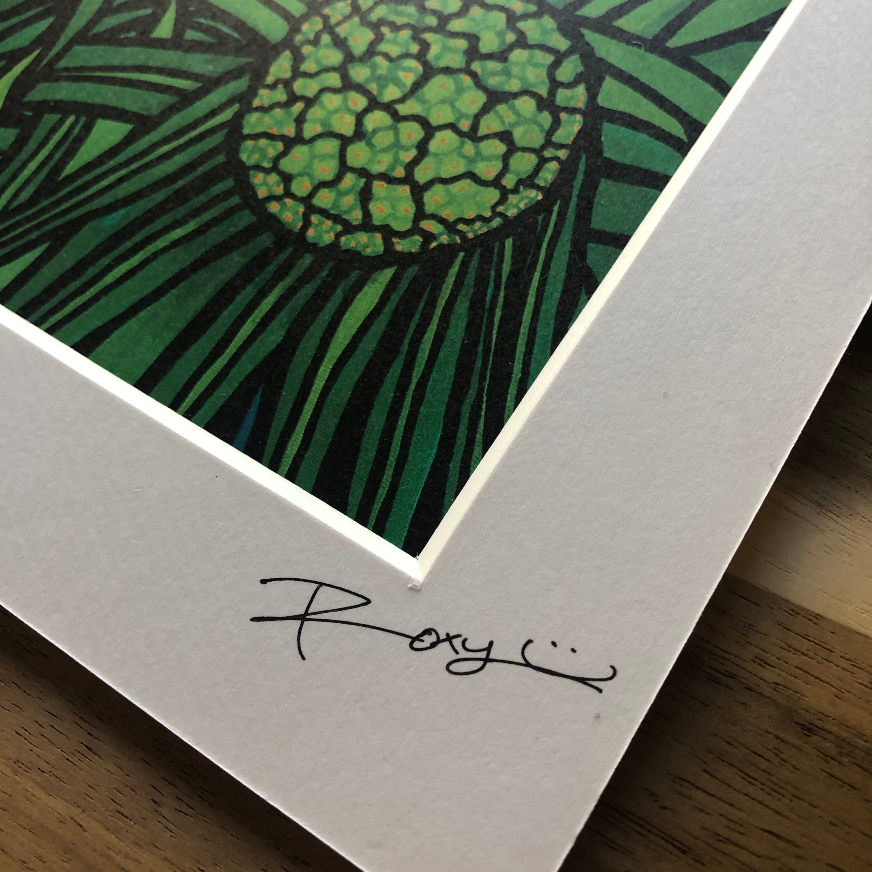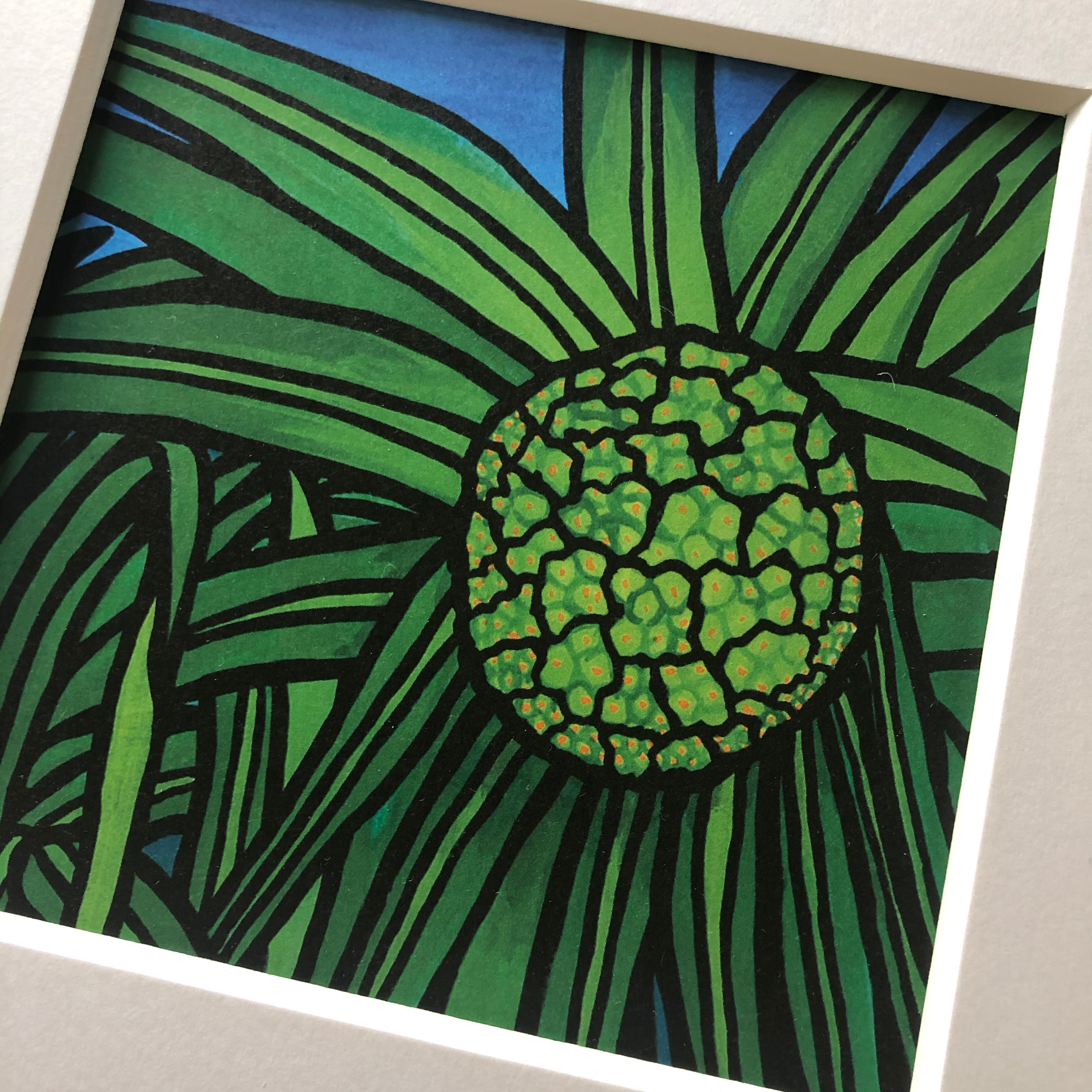 Hala(アダン)をアクリル絵の具で描き、ケント紙にオフセット印刷した作品です。