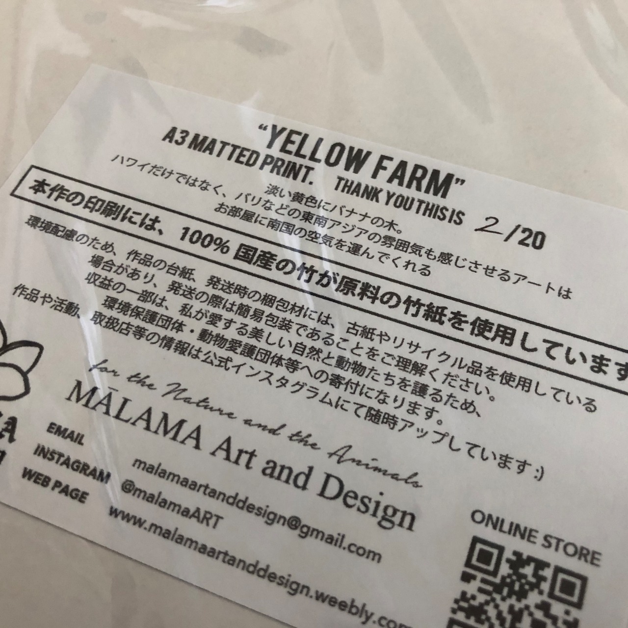 Matted Print A3 【YELLOW FARM】 バナナの木(国産竹紙使用) A3サイズ