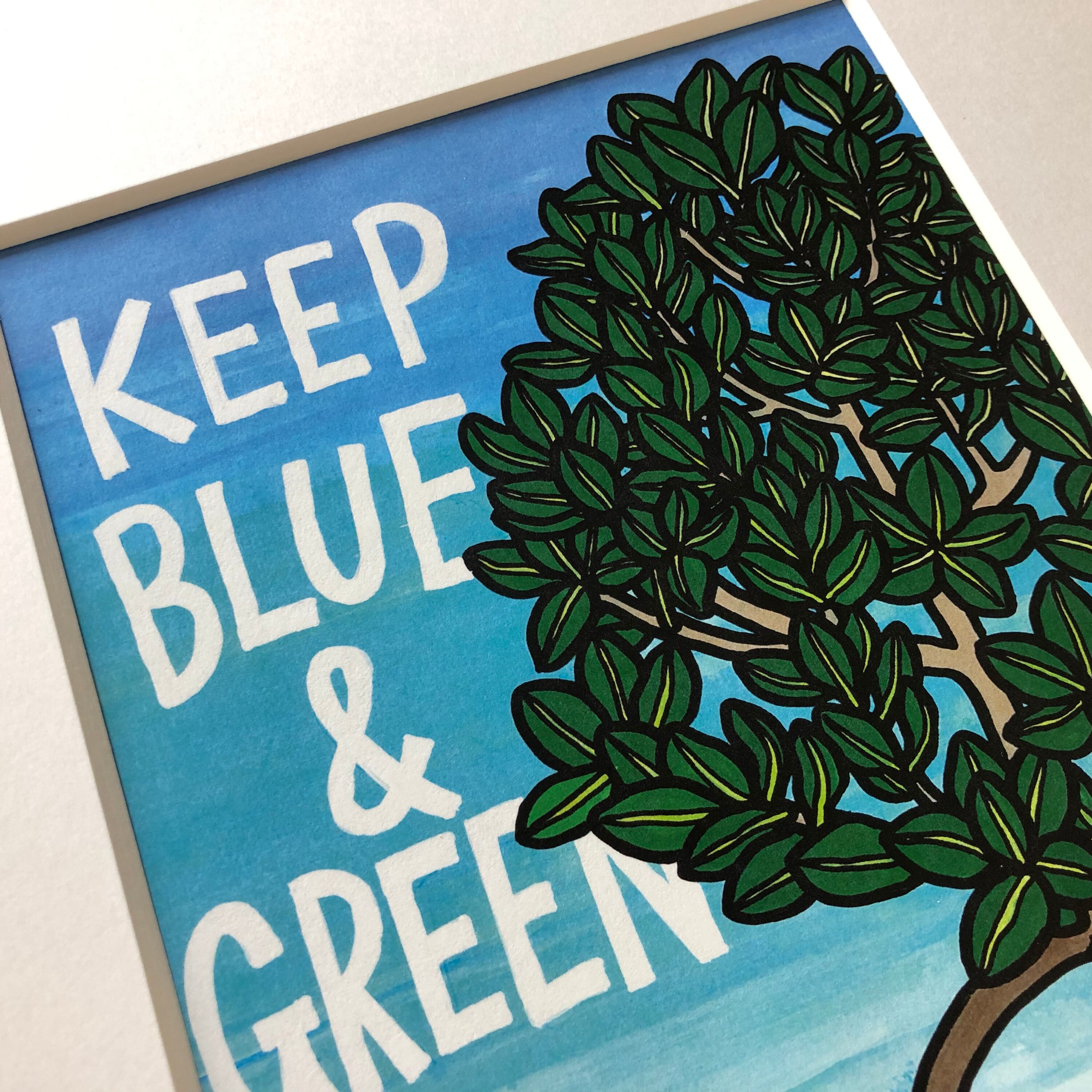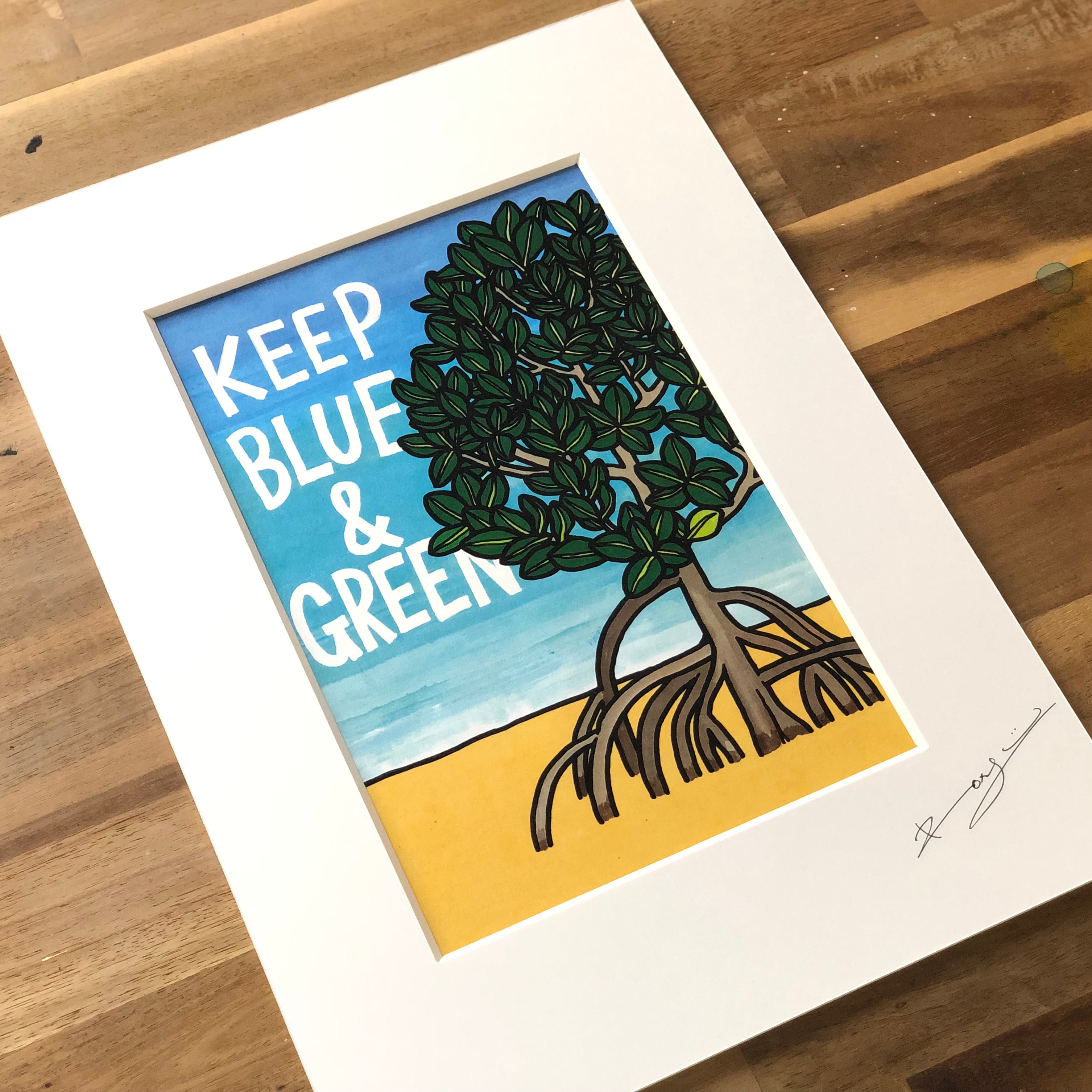 Matted Print【KEEP BLUE & GREEN】ヤエヤマヒルギ(マングローブ)国産竹紙使用A4サイズ