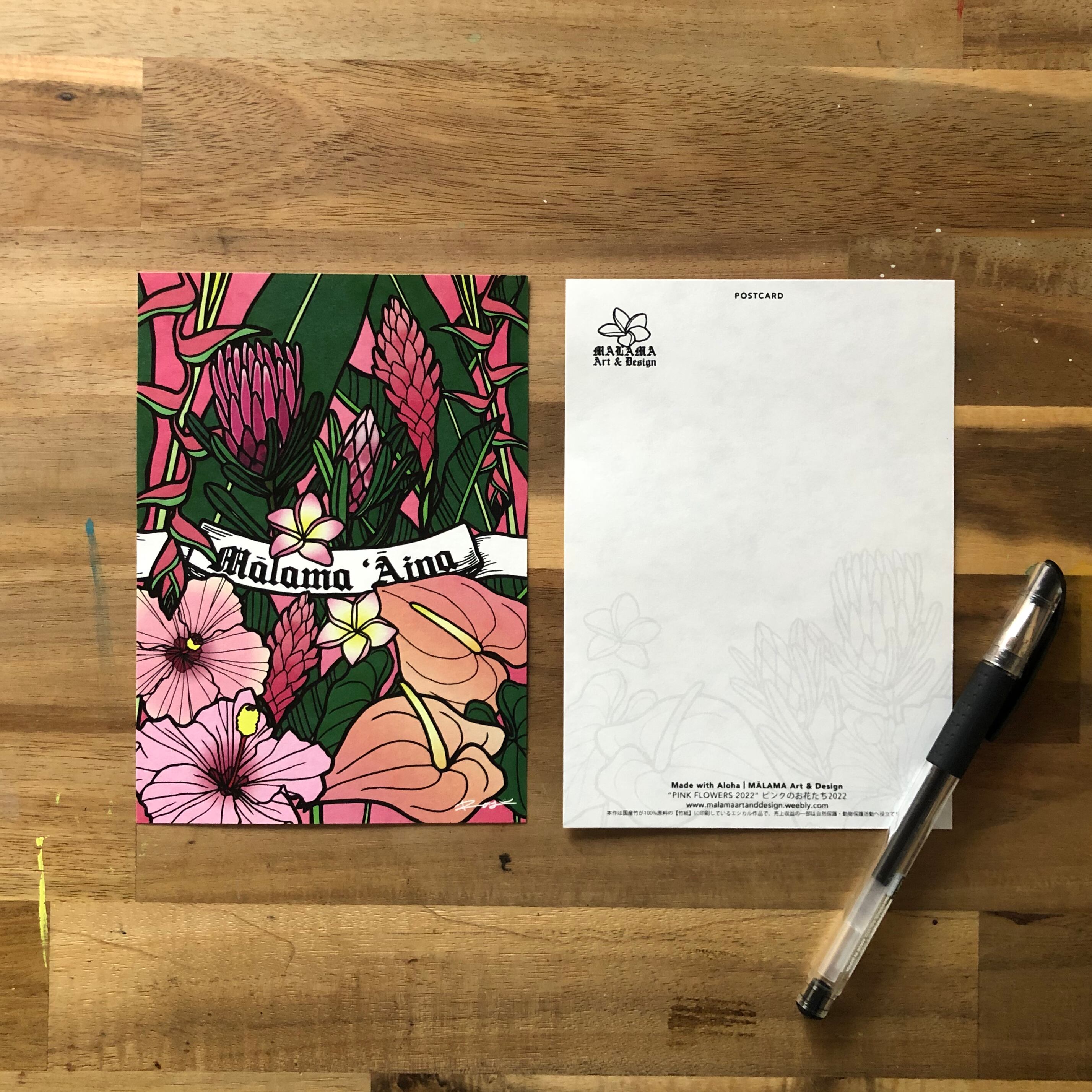 南国に咲くピンク色のお花たちをイラストにした人気作品のポストカード2022バージョン。