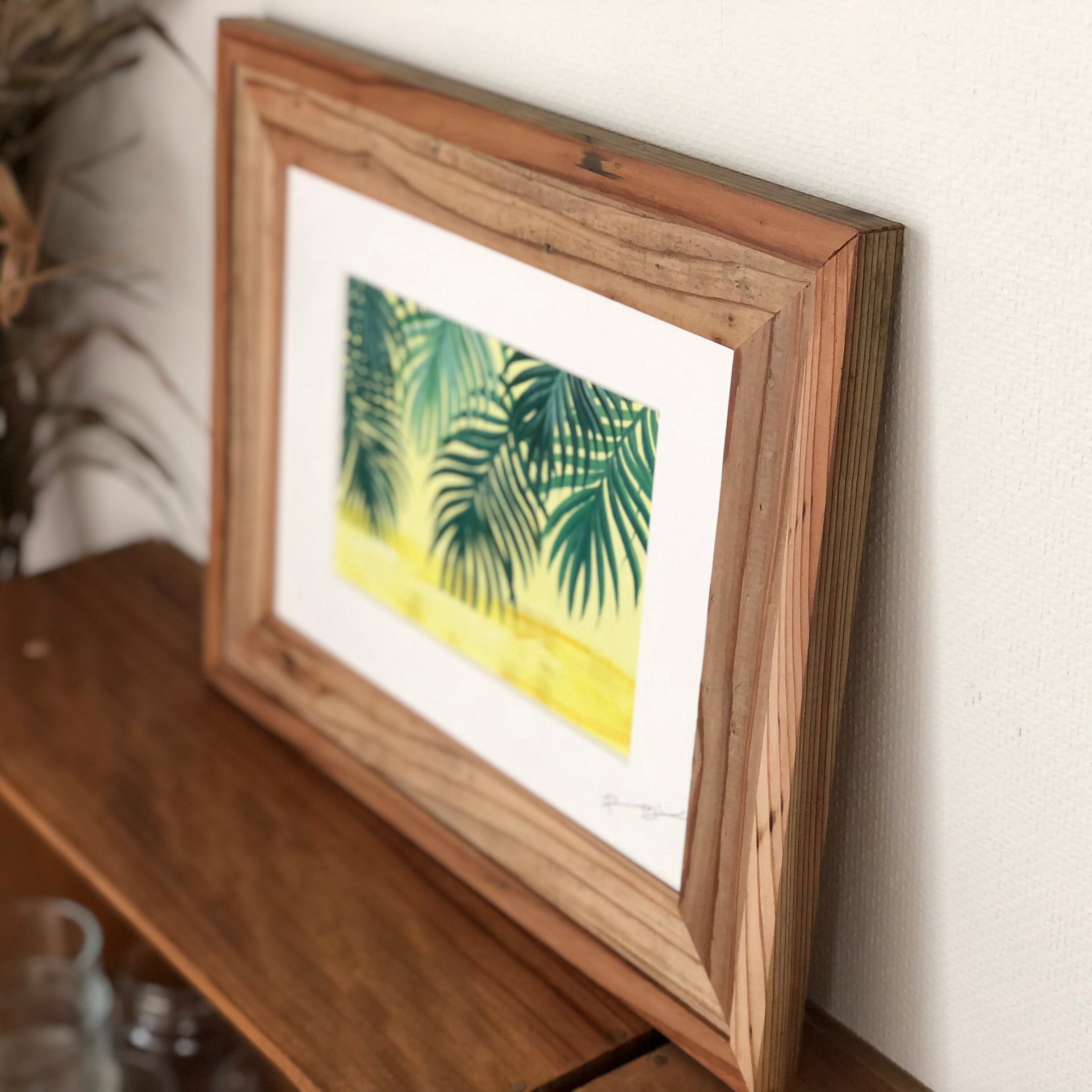 足場板古材をアップサイクルしたオリジナルフレーム入りでの販売も可能です。