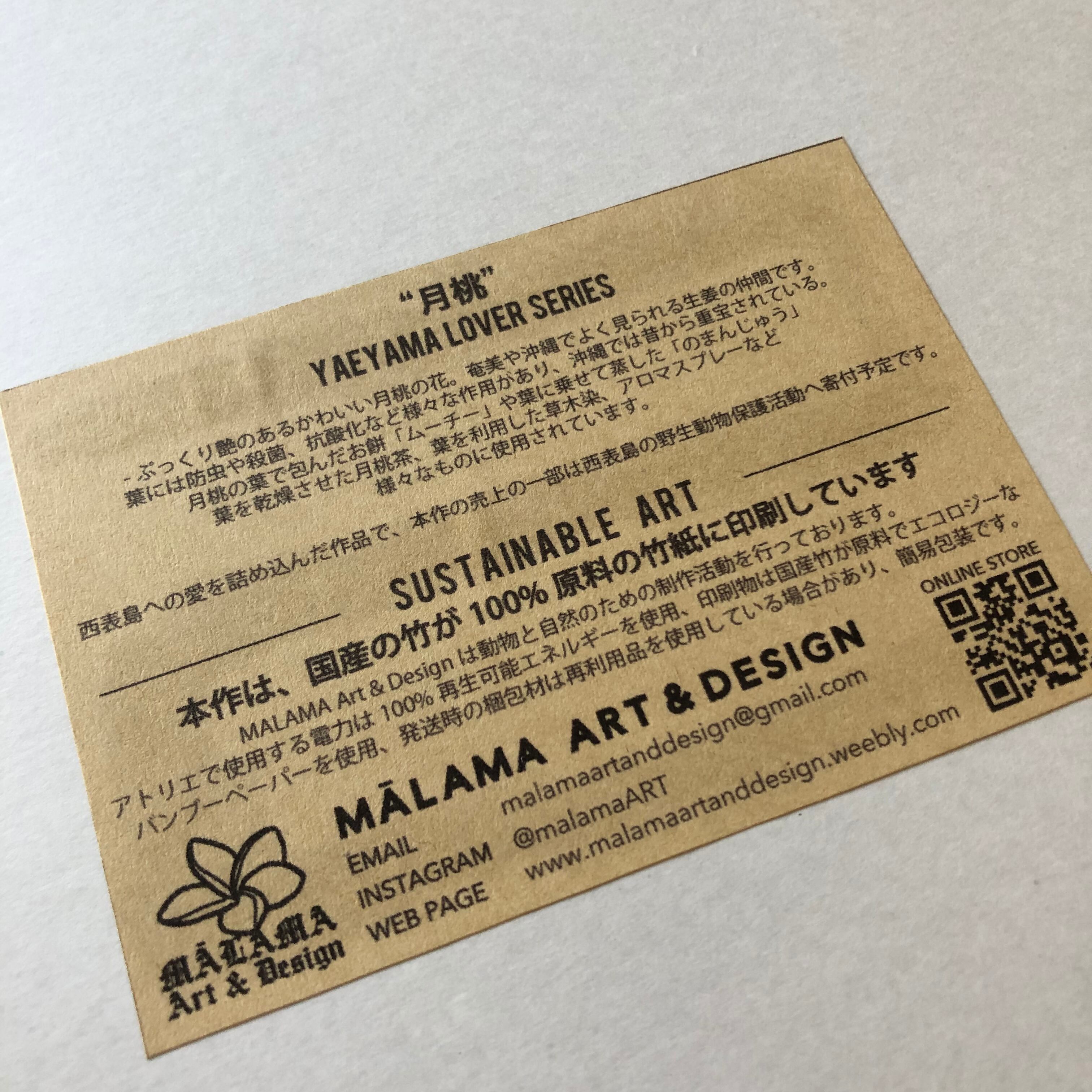 アクリル画をデータ化し、エコロジーなバンブーペーパー(100%国産の竹が原料の紙)にオンデマンド印刷したものです。