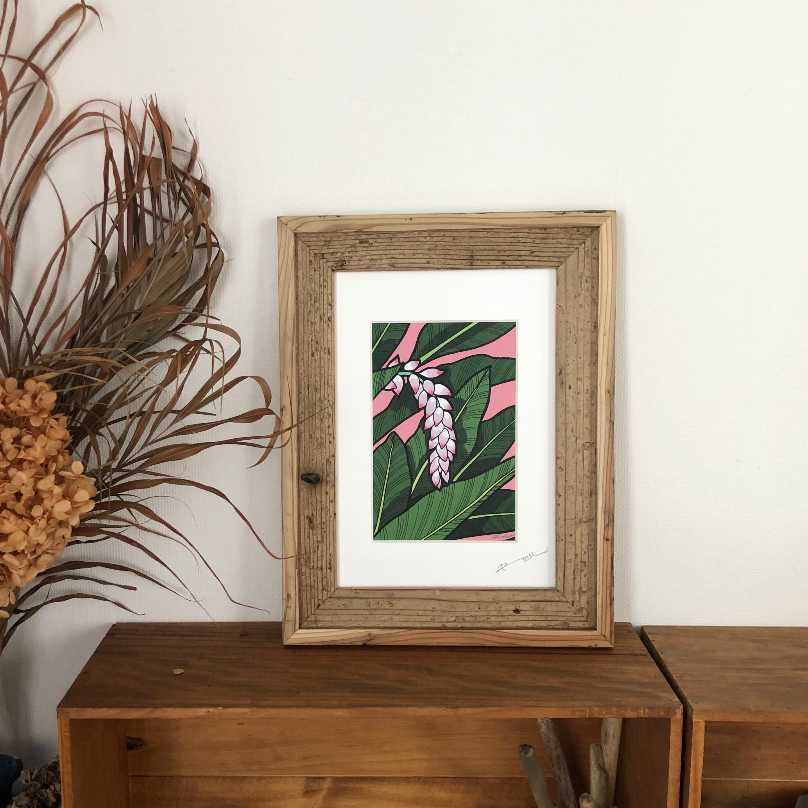 Matted Print【月桃】国産竹紙使用A4サイズプリントアートShell Ginger(フレーム別売)