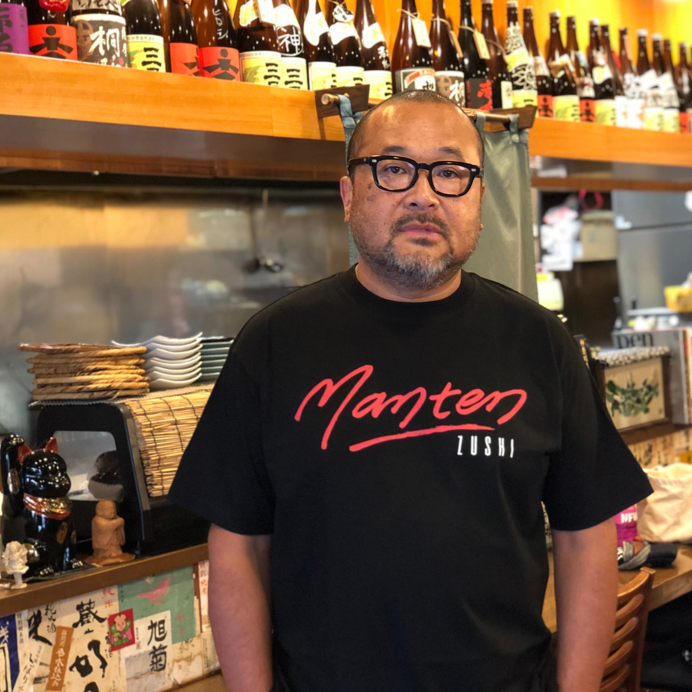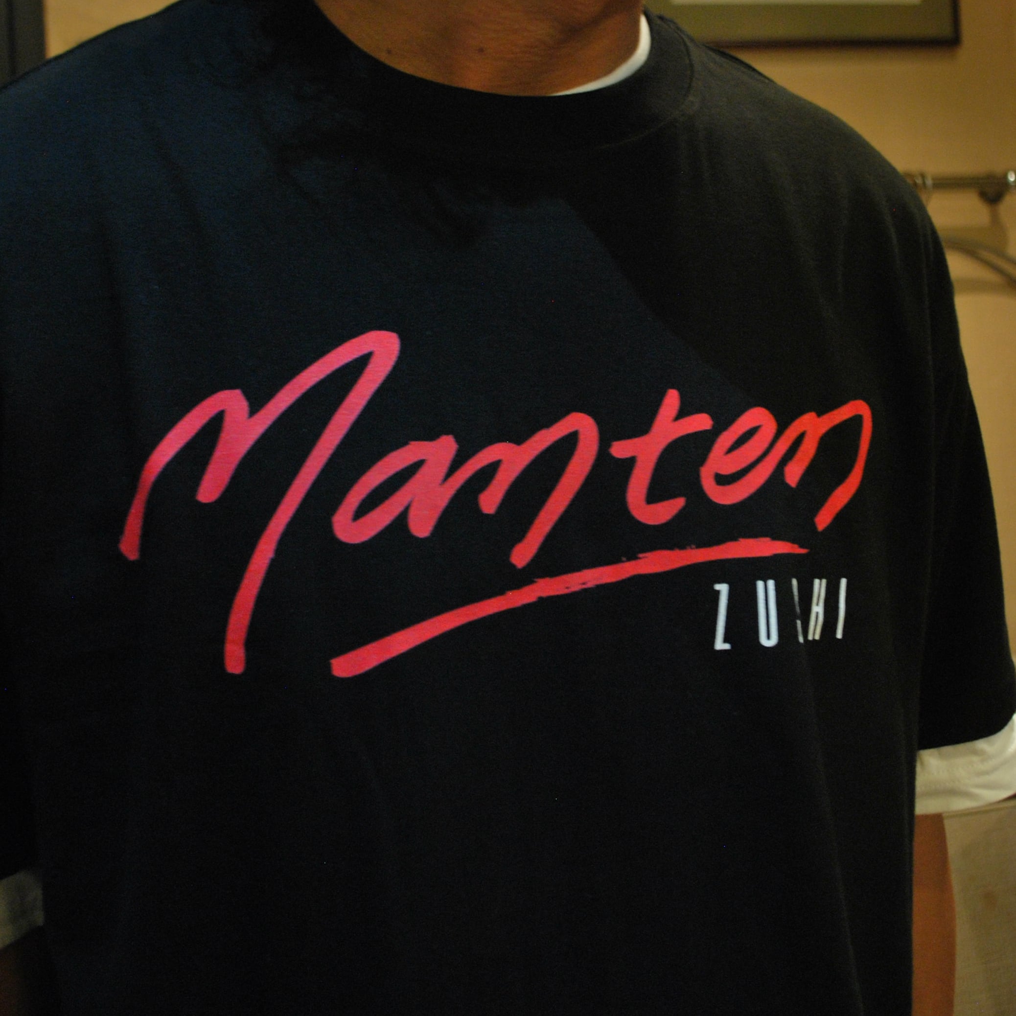 リップスティックで書いたようなMantenの文字、右下のZUSHIのフォント、オーナーのイメージをアーティストが具現化したこだわりの一着です。