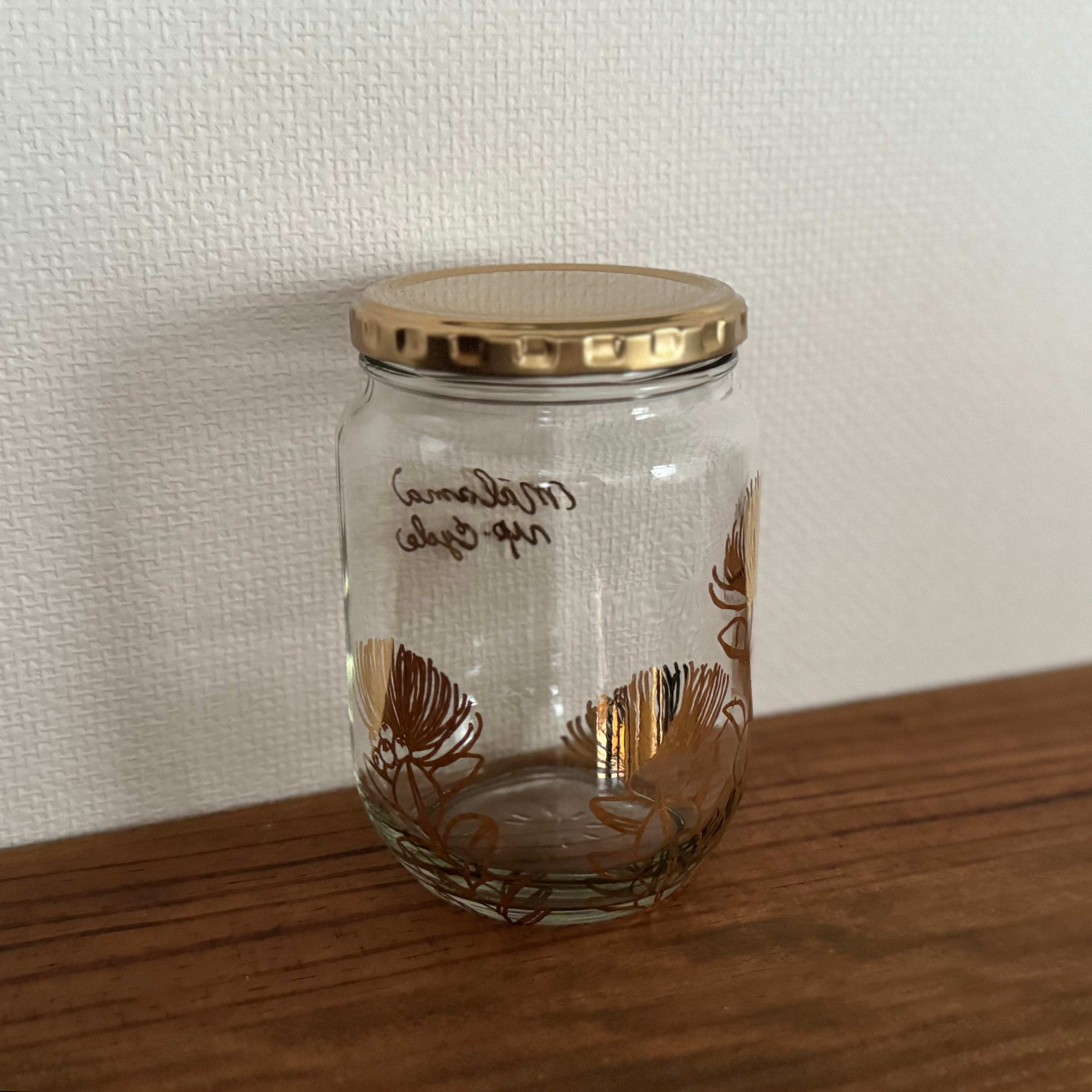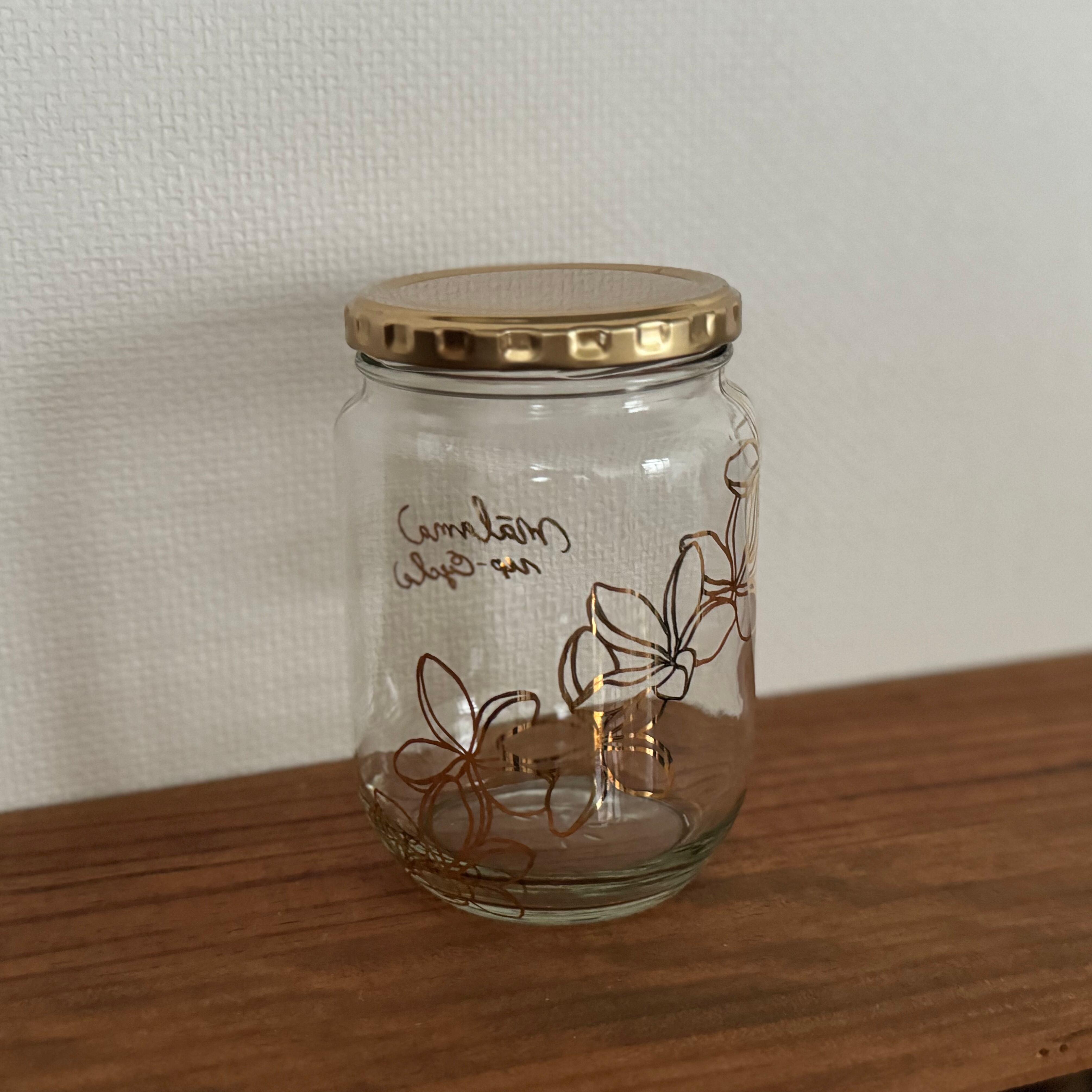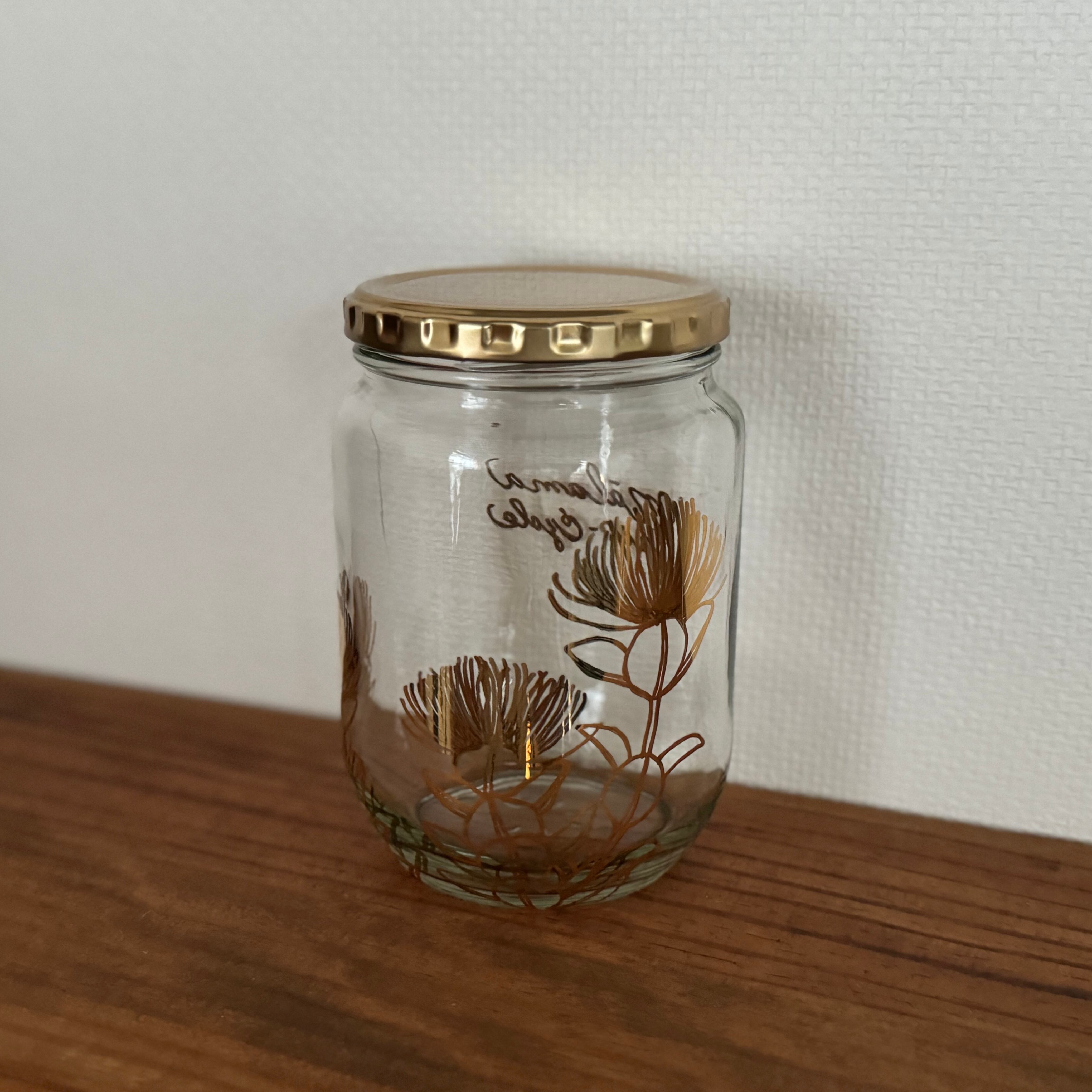 ハチミツが入っていた瓶にアートを施し、焼成したアップサイクルシリーズ。