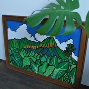 そんな昔のワイキキの田園風景をアクリル絵の具で描き、オフセット印刷した作品です。