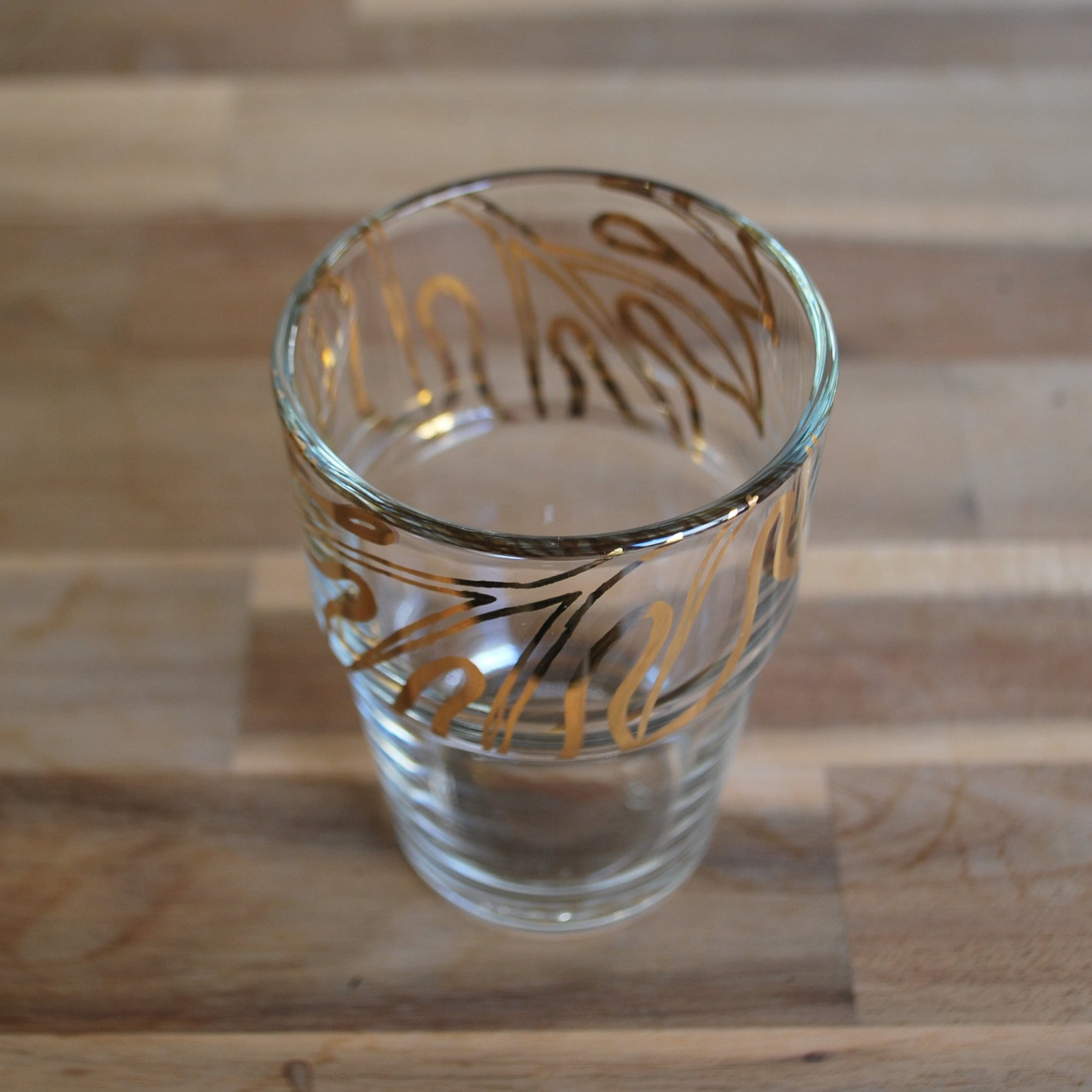 ザ・コップなシンプルで使いやすいサイズ感のグラスにハイビスカスやタロイモなどを手描きで入れている一点もの。