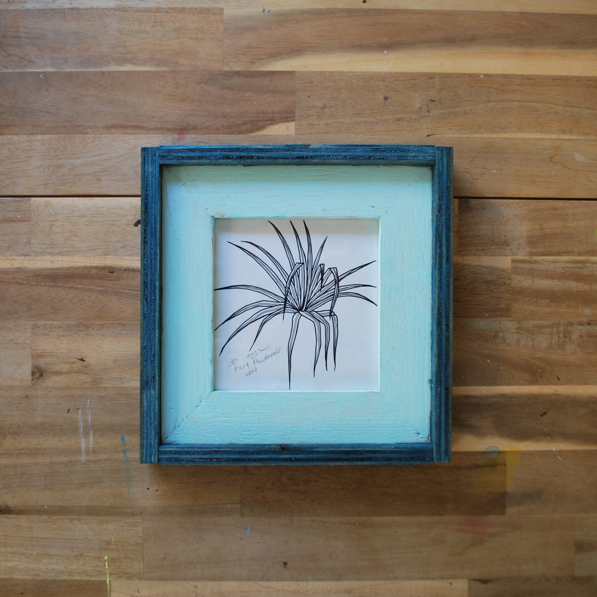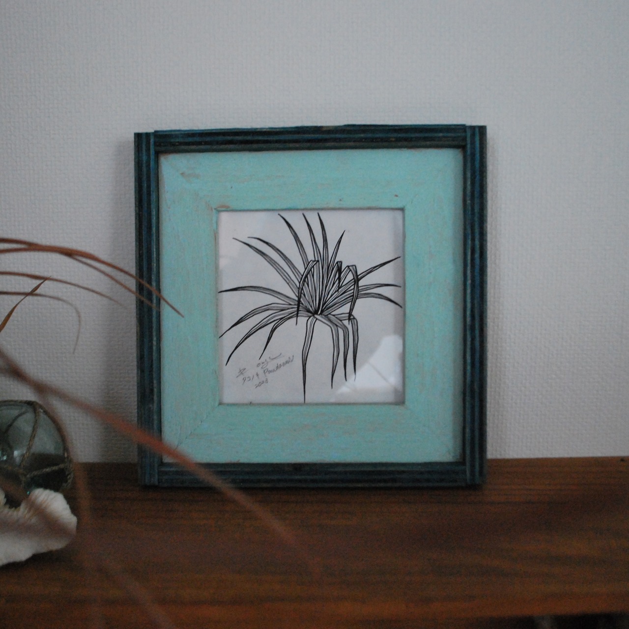 【原画】Framed Original Art【PANDANUS】タコノキアートアップサイクルフレーム入りペン画の原画(竹紙使用)
