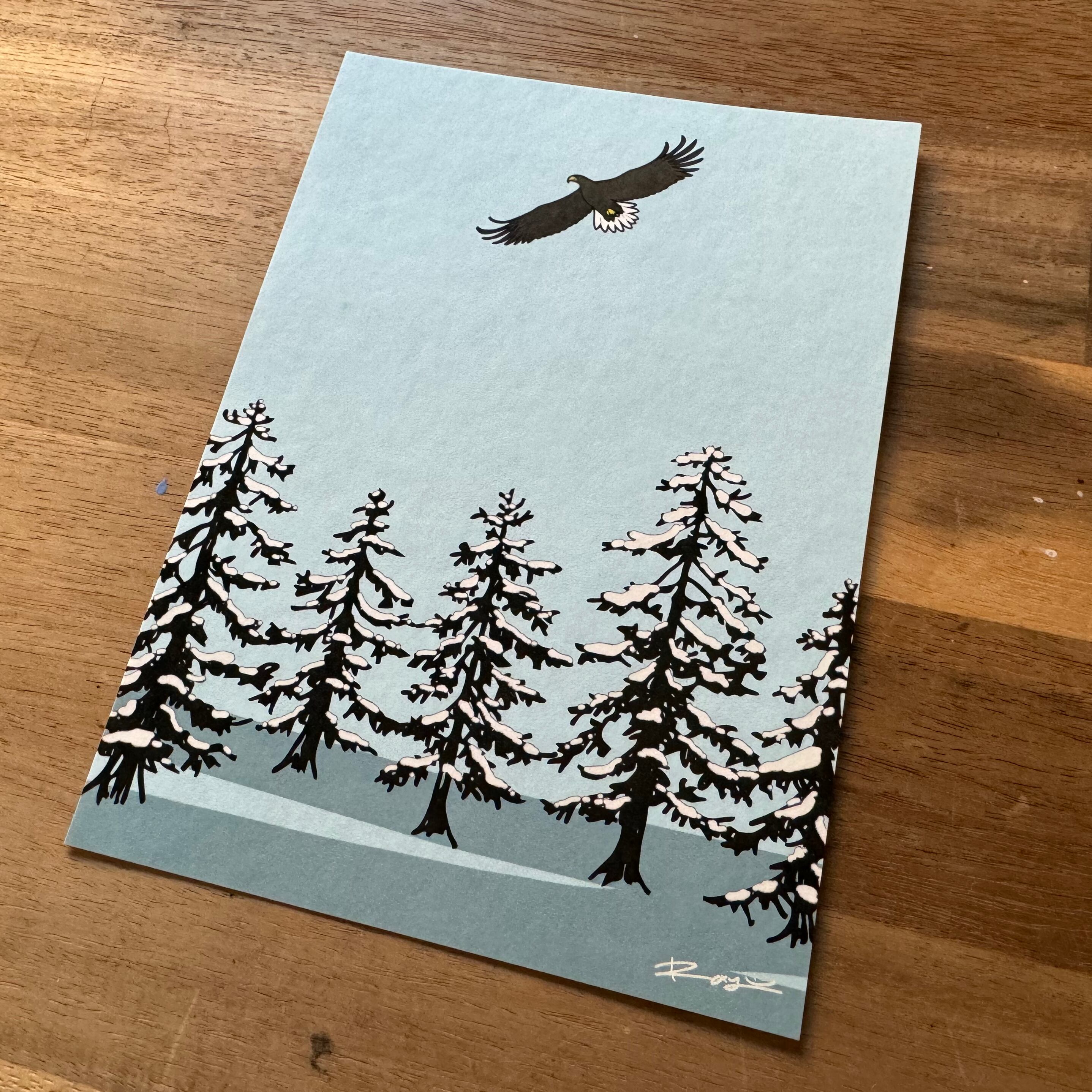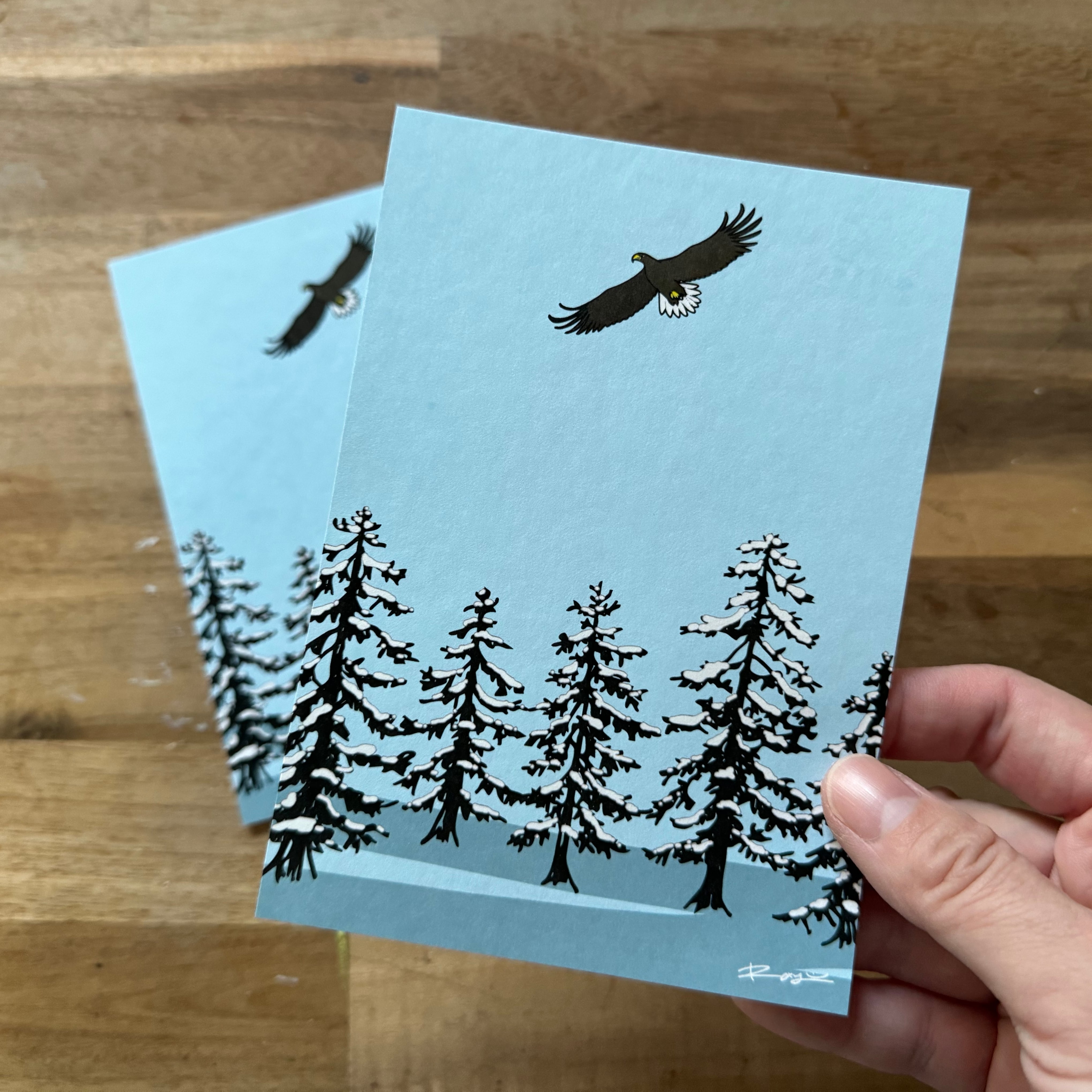 【猛禽類医学研究所サポート】Postcard【エゾマツとオジロワシ】竹紙ポストカード 北海道の森